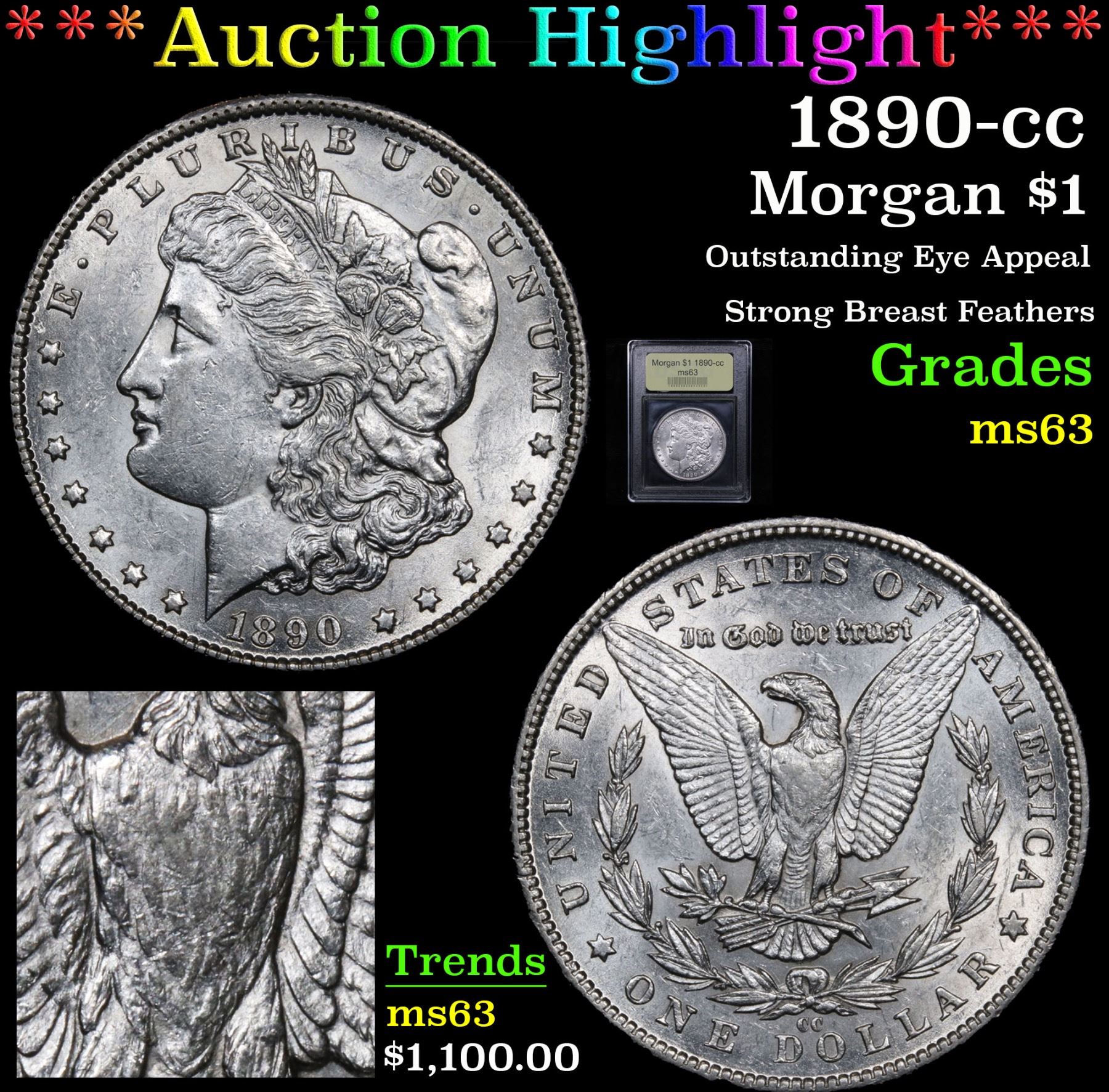 ***Auction Highlight*** 1890-cc Morgan Dollar $1 Graded Select Unc By USCG. Outstanding eye appeal; strong breast feathers
