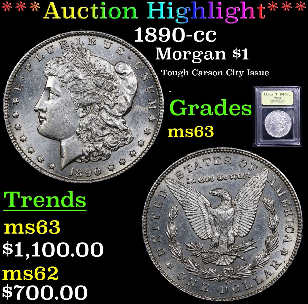 ***Auction Highlight*** 1890-cc Morgan Dollar $1 Graded Select Unc By USCG. A Corey's Pick, Bid to Win Coin