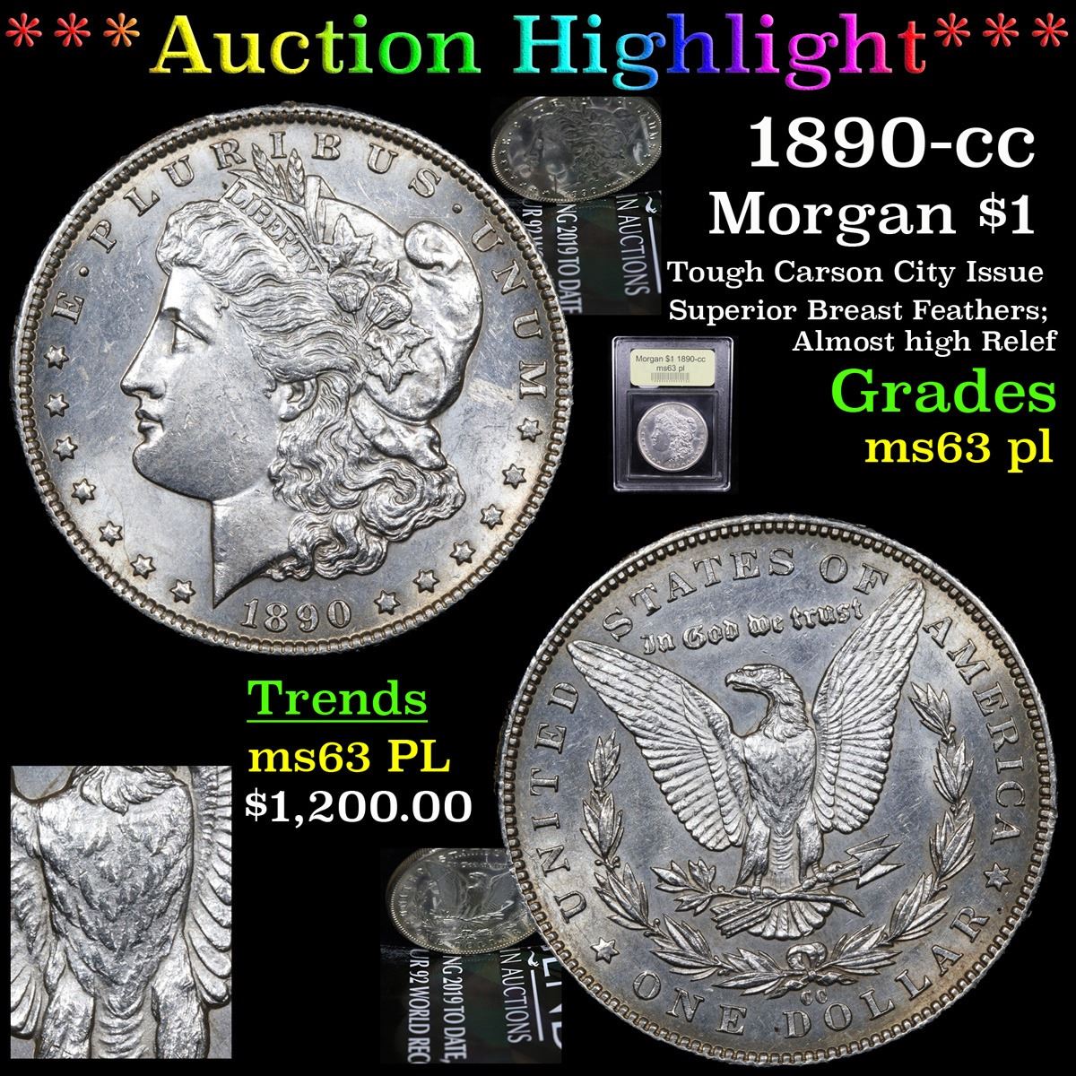 ***Auction Highlight*** 1890-cc Tough Carson City Issue Superior Breast Feathers; Almost high Relef Morgan Dollar $1 Graded Select Unc PL by USCG. A Corey's Pick, Bid to Win, Don't let it get Away Coin
