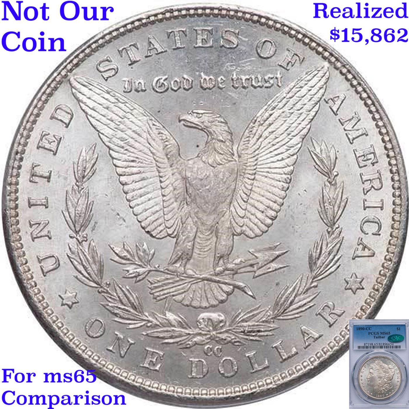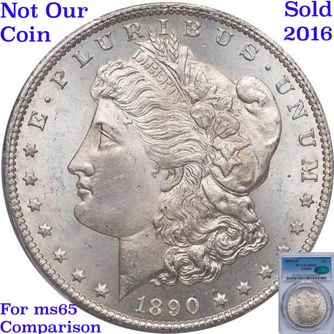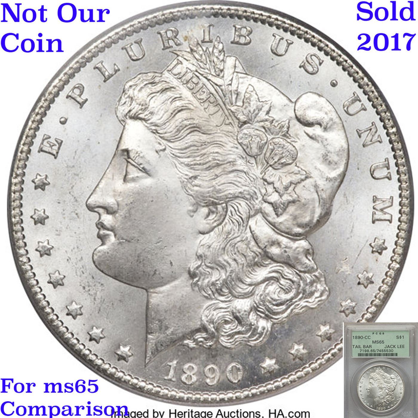 ***Auction Highlight*** 1890-cc Vam 4 Top 100 I5 R5 Tailbar Morgan Dollar $1 Graded ms65 By SEGS. This GEM has a lot going for it. First it is among the five FINEST graded examples of this very popular Morgan Dollar variety; only a single MS65+ is certified finer. The luster displays lively swirling cartwheels over a semi-PL texture on the reverse. Blast white, there is nothing to disturb the wonderful eye appeal. While there are many Morgan dollar varieties, many of them are very minor and esoteric, needing a strong glass to identify, the Tail Bar is visible by the naked eye and is often included in advanced sets of Morgan's. We have included two other ms65 Examples for your comparison, included the last to sell, the ex. Jack Lee Example that realized $25,850 in June of 2017. Clearly this is a special coin for the advanced CC collector, and we anticipate strong bidding. A Corey's Pick, Bid to Win, Don't let it get Away, you might not find its equal Coin. I give this coin my highest recommendation