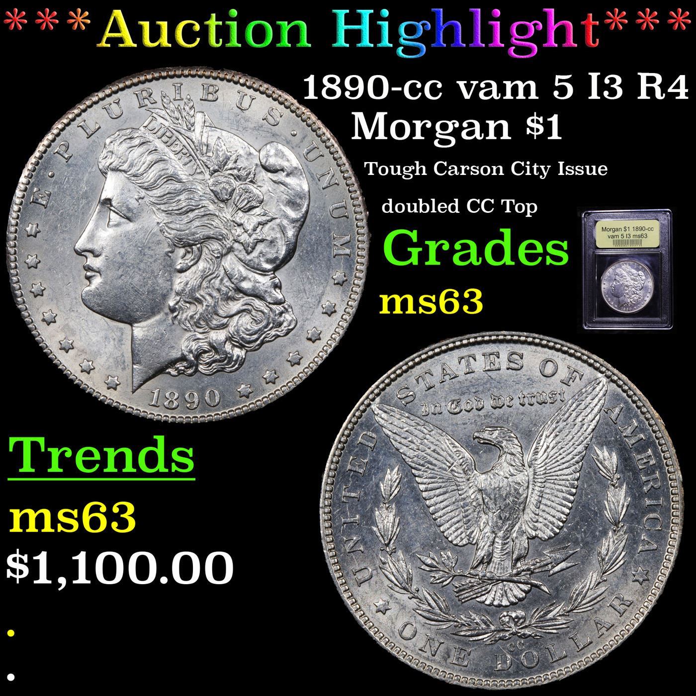 ***Auction Highlight*** 1890-cc vam 5 I3 R4 Morgan Dollar $1 Graded Select Unc By USCG. A Corey's Pick, Bid to Win Coin