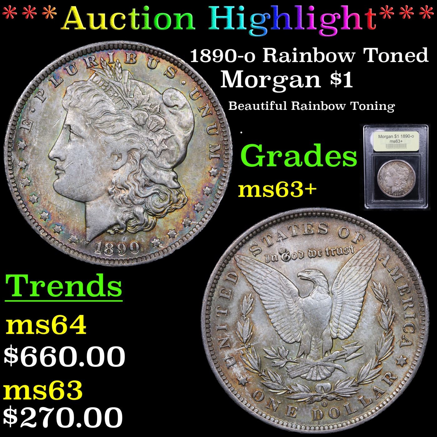 ***Auction Highlight*** 1890-o Rainbow Toned Morgan Dollar $1 Graded Select+ Unc By USCG. A Corey's Pick, Bid to Win Coin