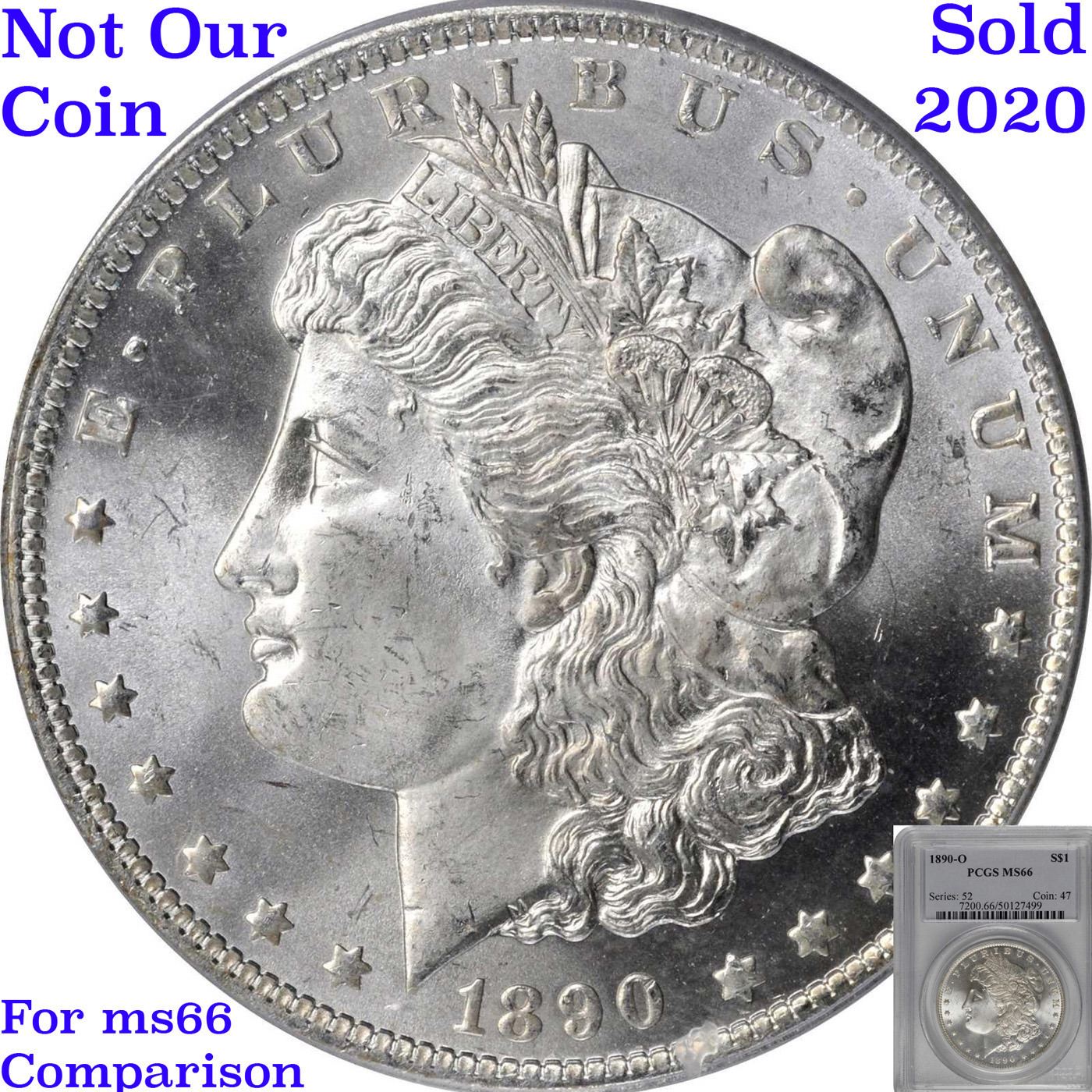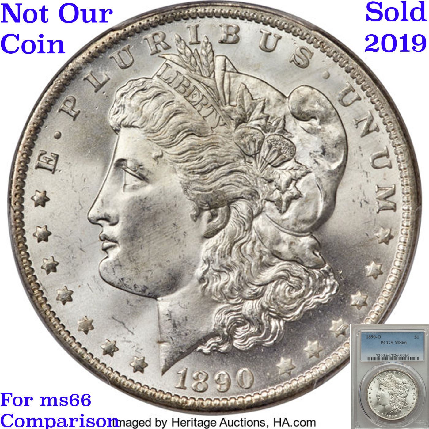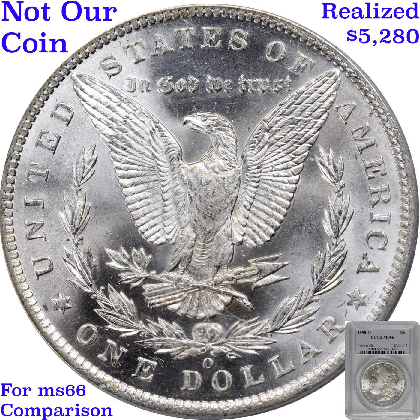 ***Auction Highlight*** 1890-o Vam 11 R5 Morgan Dollar $1 Graded GEM+ Unc By USCG. The availability of the 1890-O Morgan dollar drops off sharply in MS66, and no finer coins are known. The coin is brilliant and well-struck for the date, showing exceptionally clean surfaces. The luster is the showstopper here though, shimmering like frost when rotated beneath a light. Although some 1890-O dollars are well-produced, the issue is notorious for weak strikes and heavy bag marks. This Gem plus example is notably free of such marks, and the strike is only slightly weak over the centers. The coin has faint mint roller marks on both sides visible only under magnification. I am including two examples for your comparison. Both are other ms66 examples, one clearly shows the same mint made roller marks on a 66 graded coin. A Corey's Pick, Bid to Win, Don't let it get Away, you might not find its equal Coin. I give this coin my highest recommendation