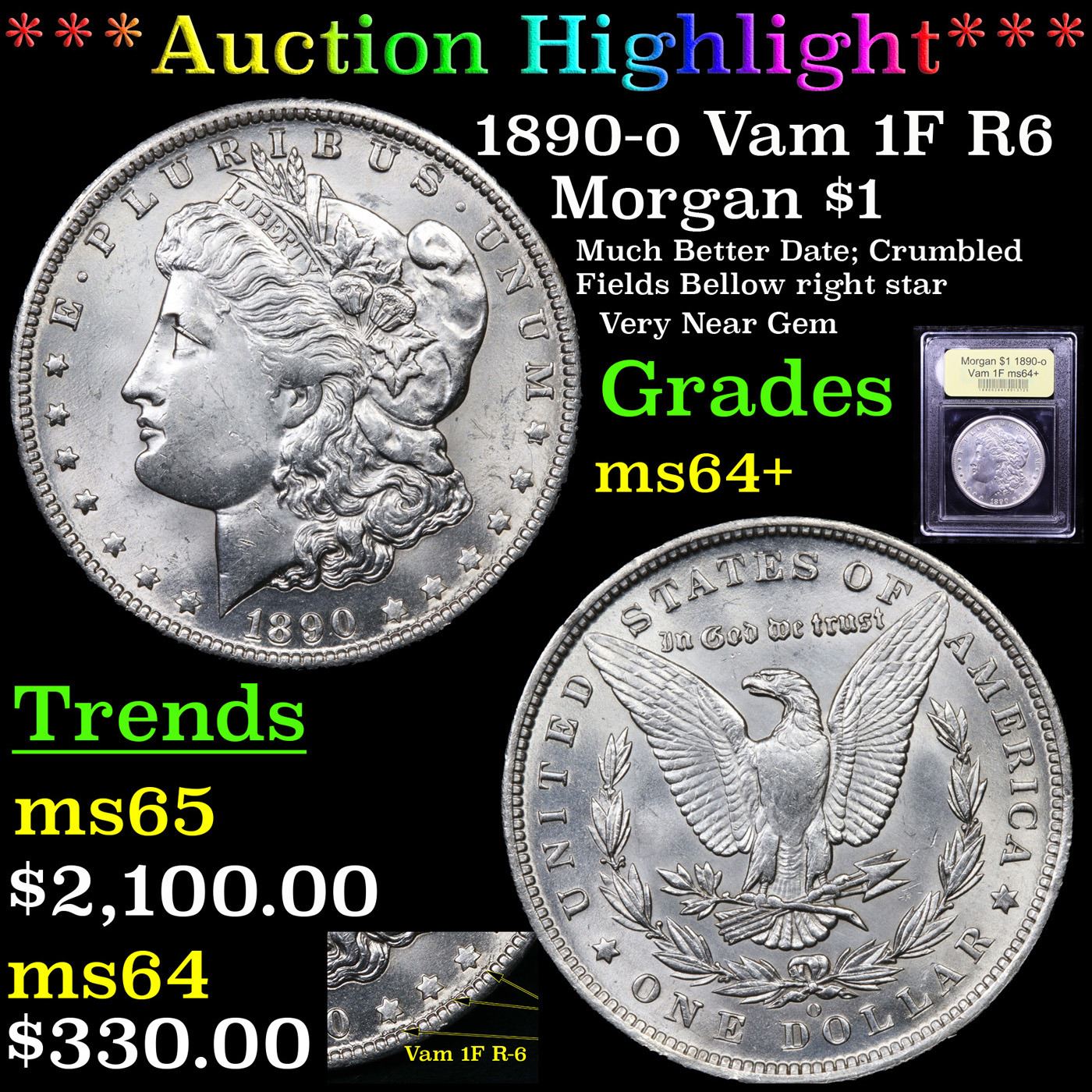 ***Auction Highlight*** 1890-o Vam 1F R6 Morgan Dollar $1 Graded Choice+ Unc By USCG. A Corey's Pick, Bid to Win Coin