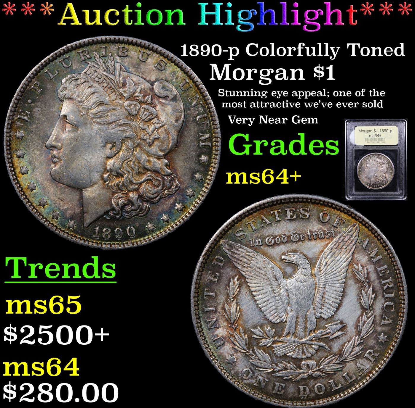 ***Auction Highlight*** 1890-p Colorfully Toned Morgan Dollar $1 Graded Choice+ Unc By USCG.