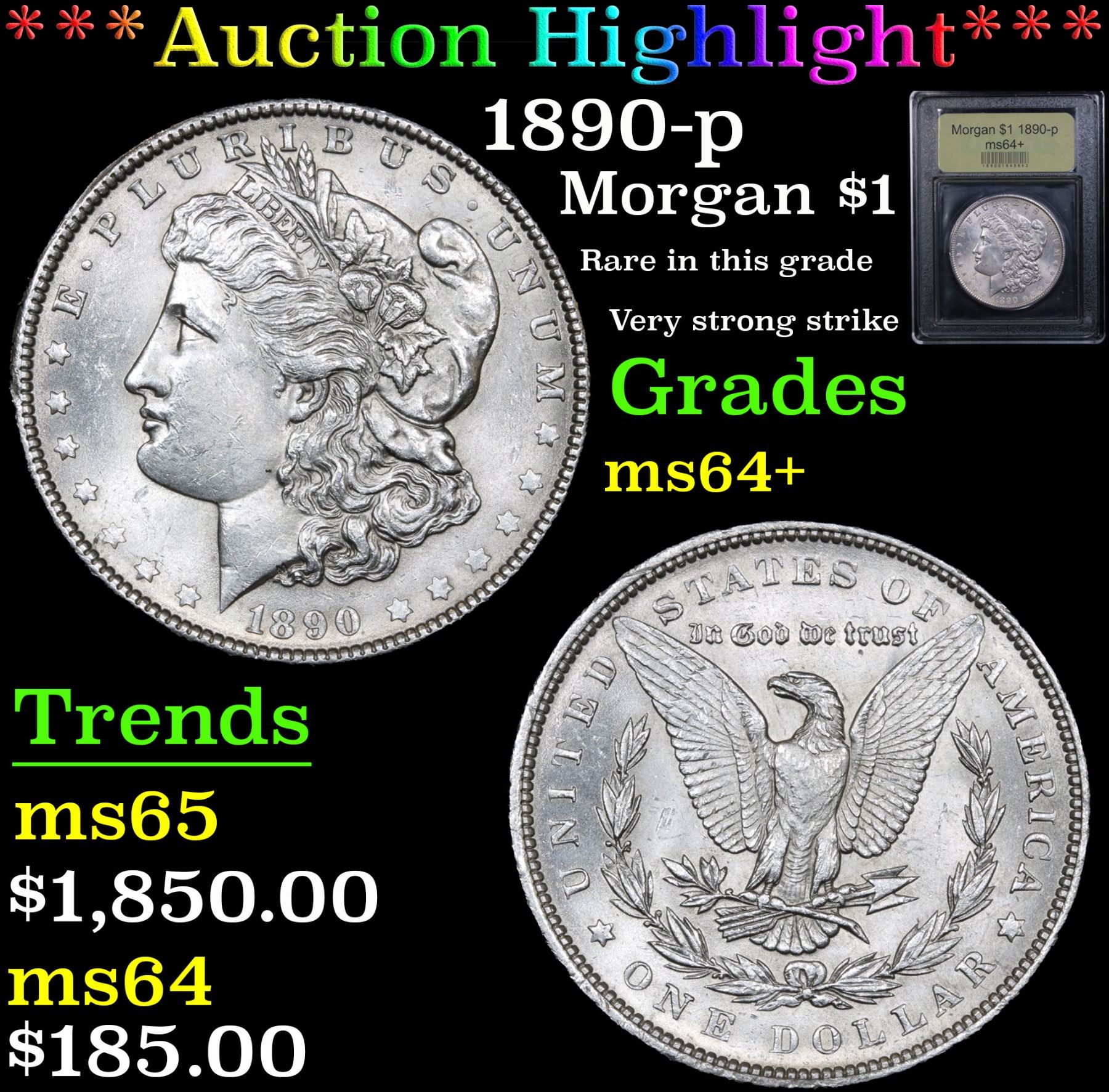 ***Auction Highlight*** 1890-p Morgan Dollar $1 Graded Choice+ Unc By USCG. Rare in this grade; Very strong strike A Corey's Pick