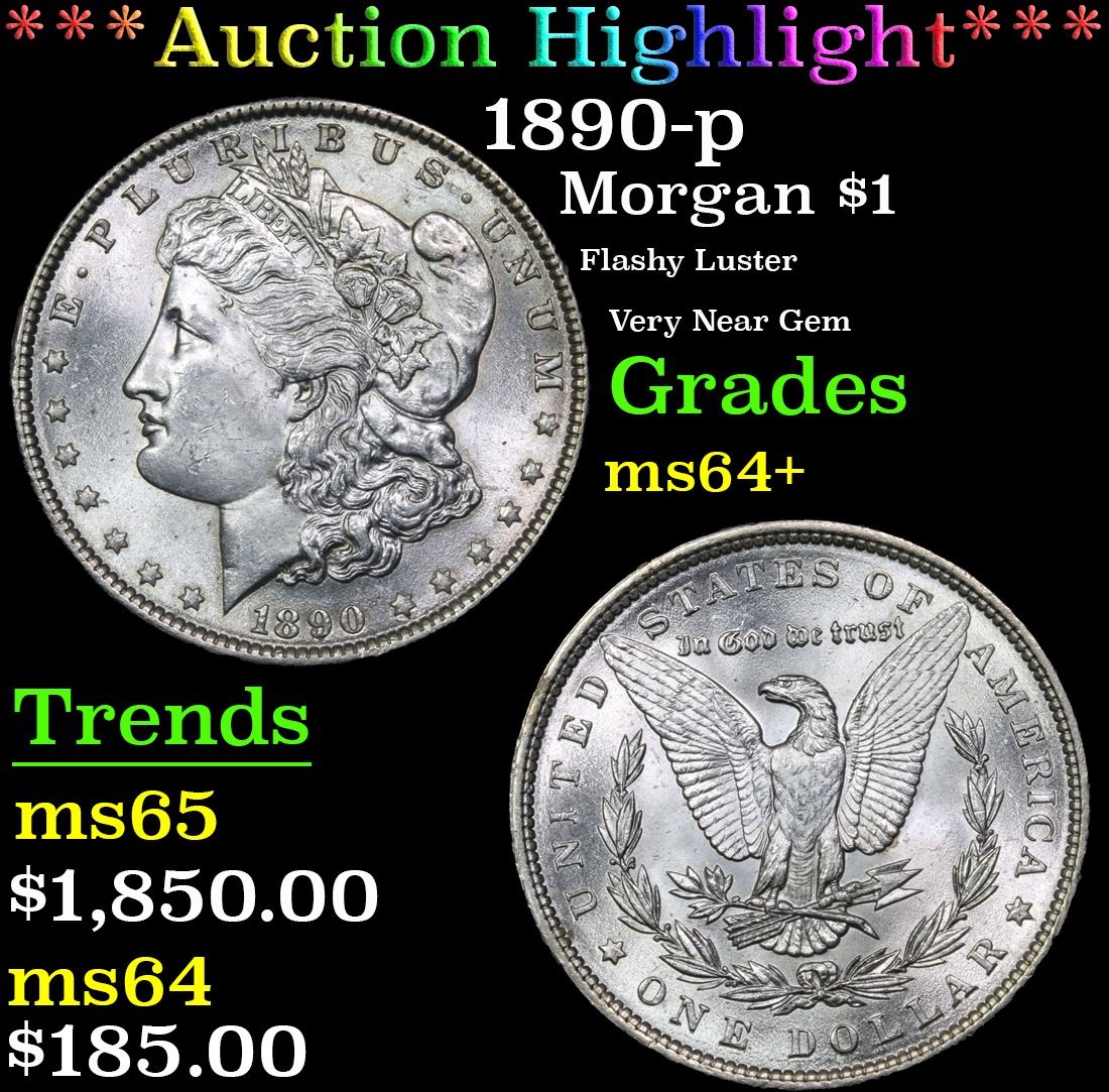 ***Auction Highlight*** 1890-p Flashy Luster Very Near Gem Morgan Dollar $1 Graded Choice+ Unc By USCG. A Corey's Pick, Bid to Win Coin