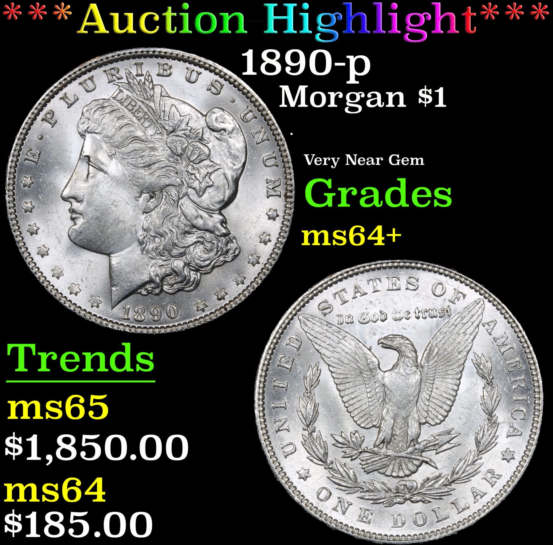 ***Auction Highlight*** 1890-p . Very Near Gem Morgan Dollar $1 Graded Choice+ Unc By USCG.