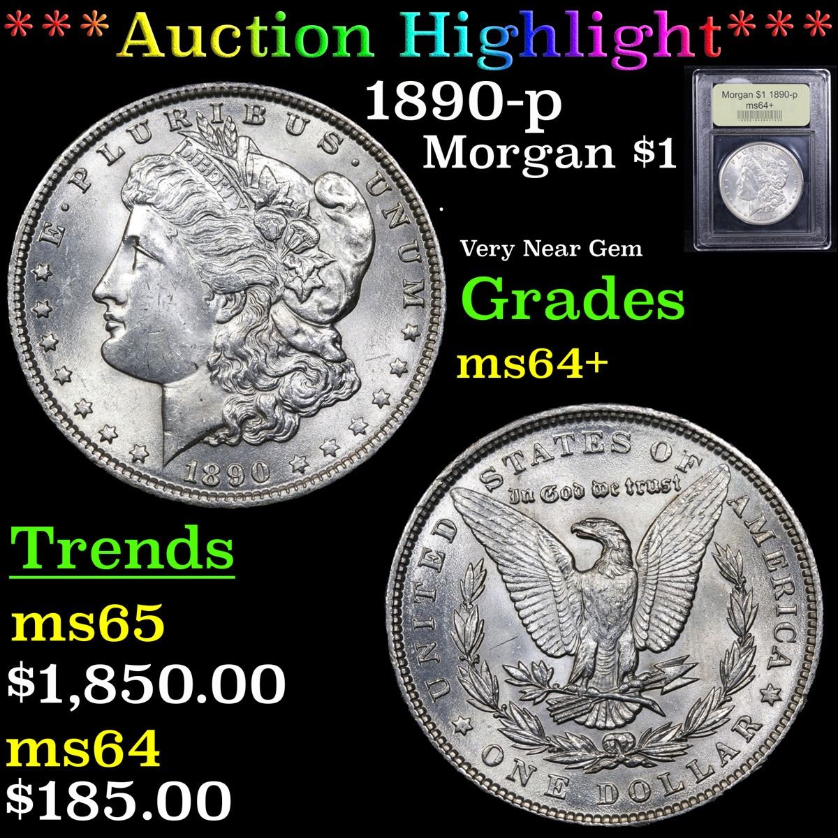 ***Auction Highlight*** 1890-p . Very Near Gem Morgan Dollar $1 Graded Choice+ Unc By USCG.