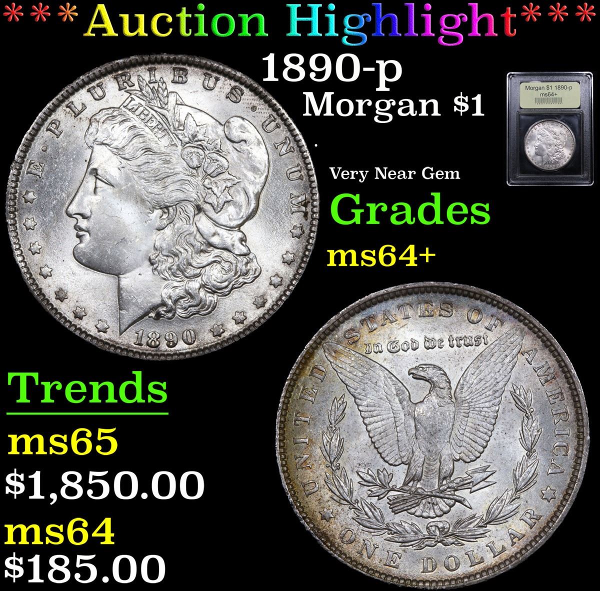 ***Auction Highlight*** 1890-p . Very Near Gem Morgan Dollar $1 Graded Choice+ Unc By USCG. A Corey's Pick, Bid to Win Coin