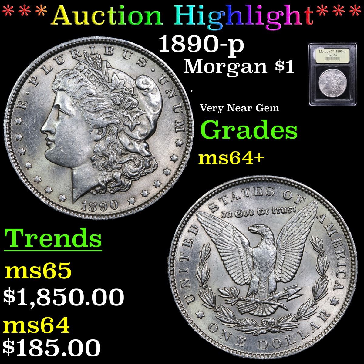 ***Auction Highlight*** 1890-p . Very Near Gem Morgan Dollar $1 Graded Choice+ Unc By USCG.