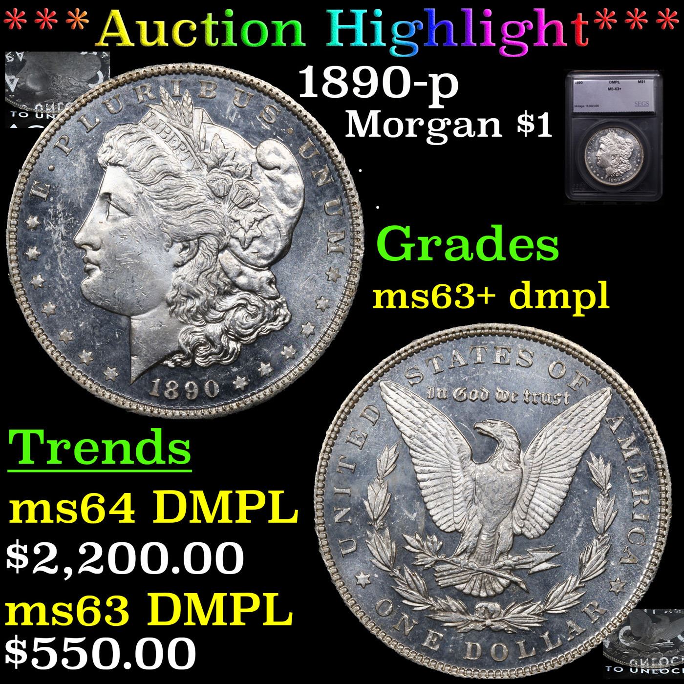 ***Auction Highlight*** 1890-p Morgan Dollar $1 Graded ms63+ dmpl BY SEGS.