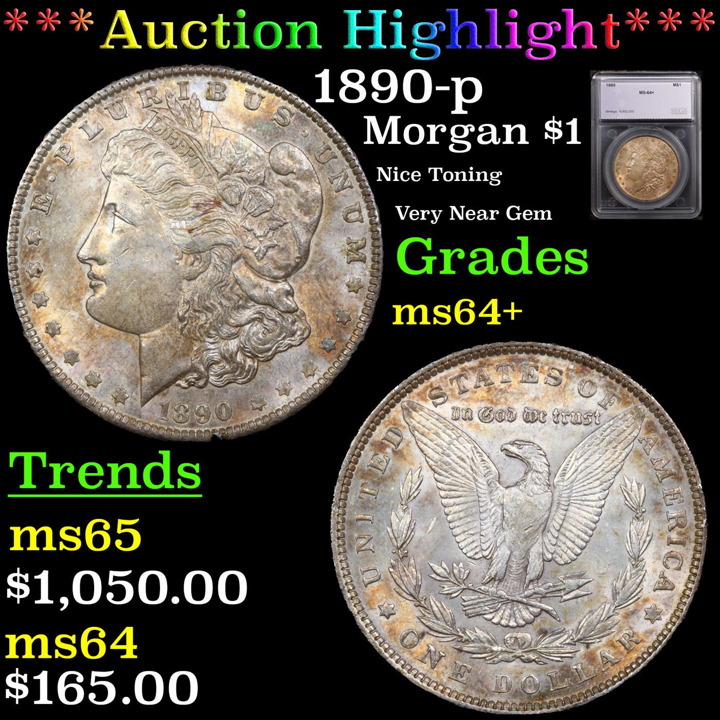***Auction Highlight*** 1890-p Morgan Dollar $1 Graded ms64+ BY SEGS. A Corey's Pick