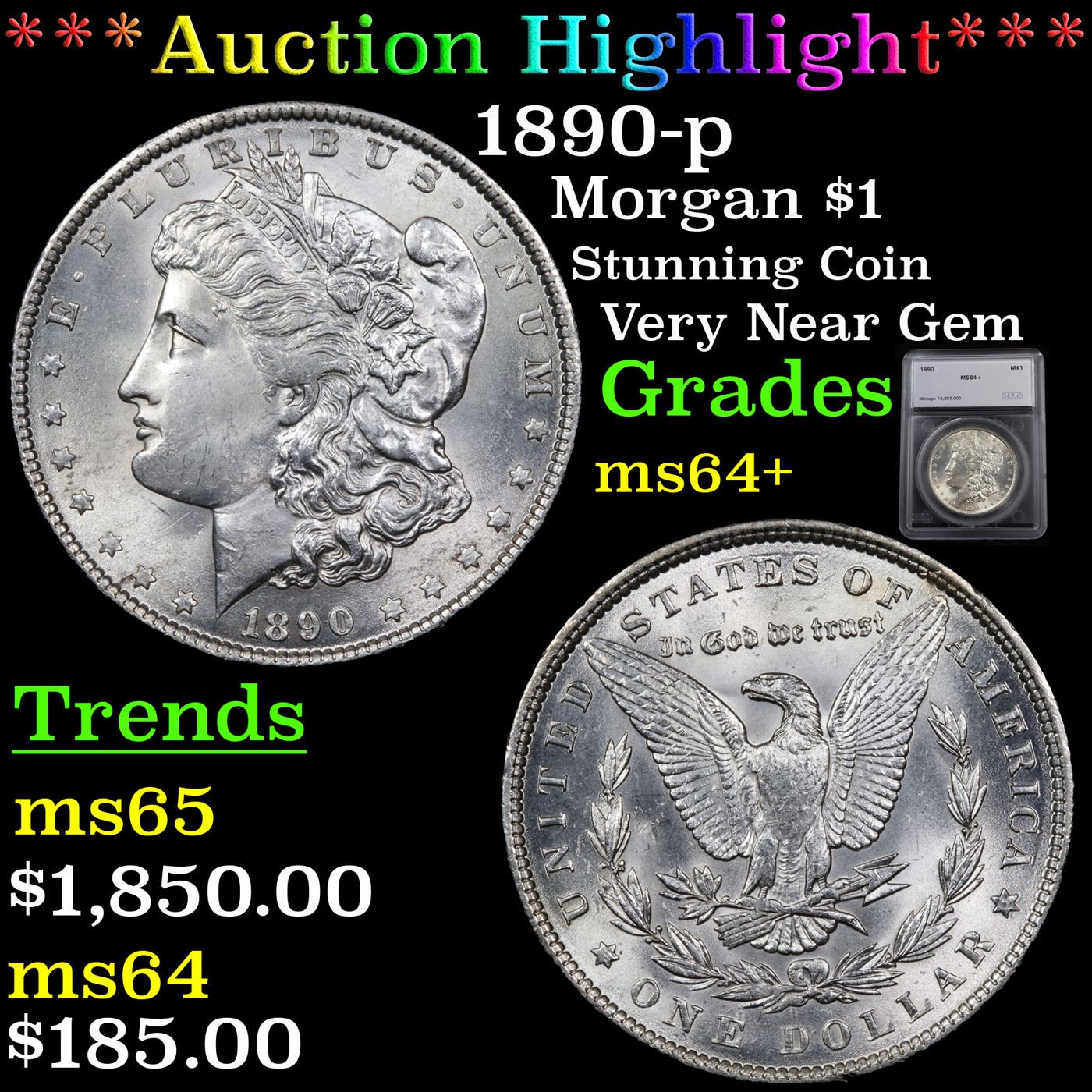 ***Auction Highlight*** 1890-p Morgan Dollar $1 Graded ms64+ By SEGS. A Corey's Pick, Bid to Win Coin
