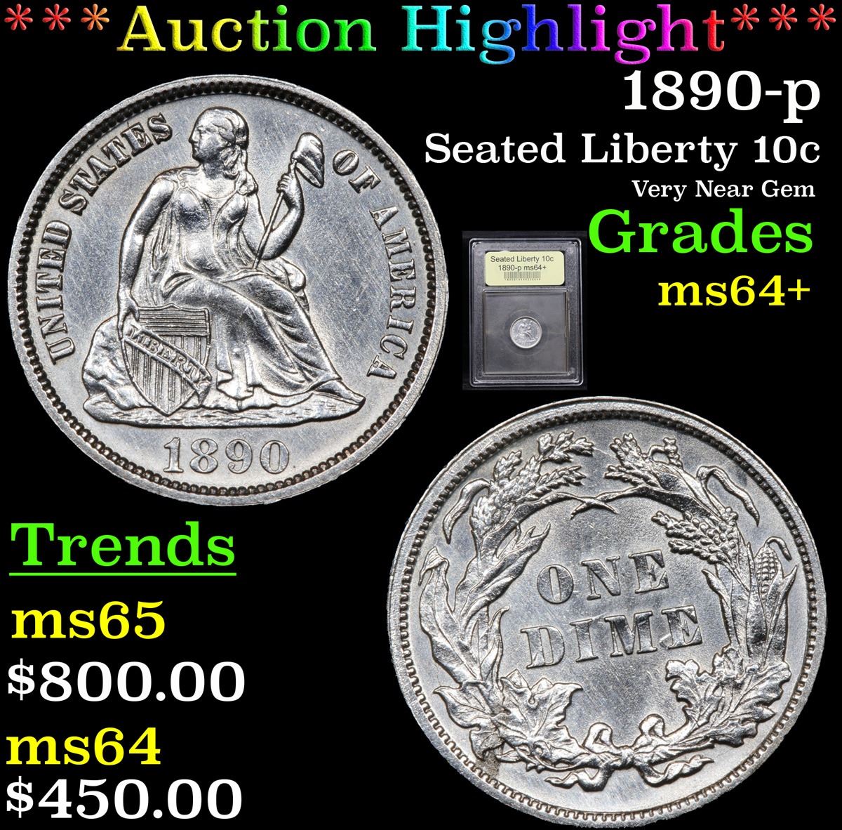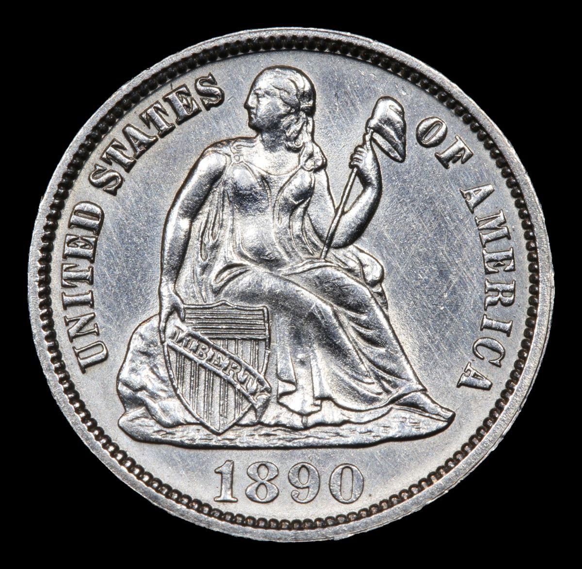 ***Auction Highlight*** 1890-p . Very Near Gem Seated Liberty Dime 10c Graded Choice+ Unc By USCG. A Corey's Pick, Bid to Win Coin