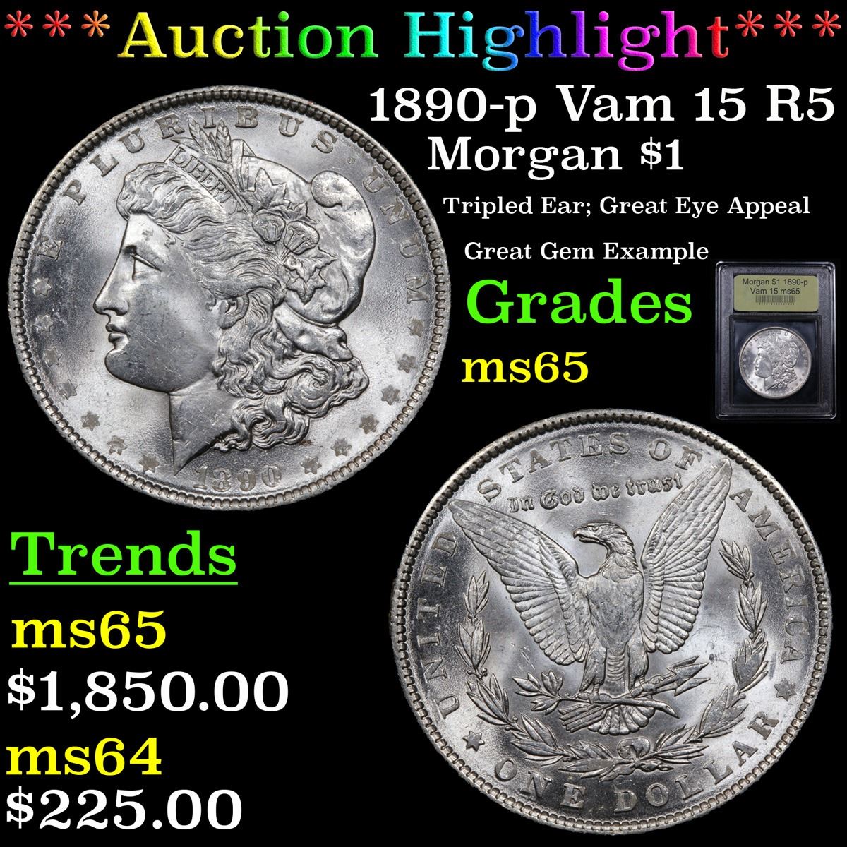 ***Auction Highlight*** 1890-p Vam 15 R5 Morgan Dollar $1 Graded GEM Unc By USCG.