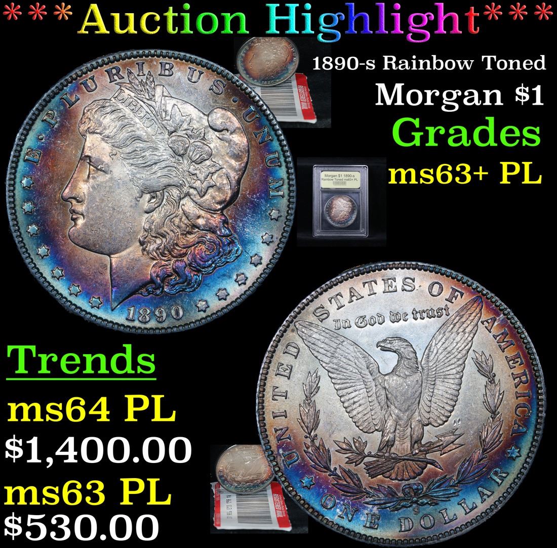 ***Auction Highlight*** 1890-s Rainbow Toned . . Morgan Dollar $1 Graded Select Unc+ PL By USCG. A Corey's Pick, Bid to Win Coin