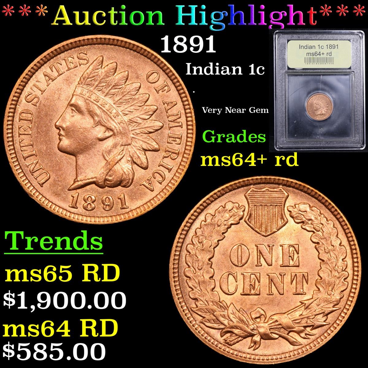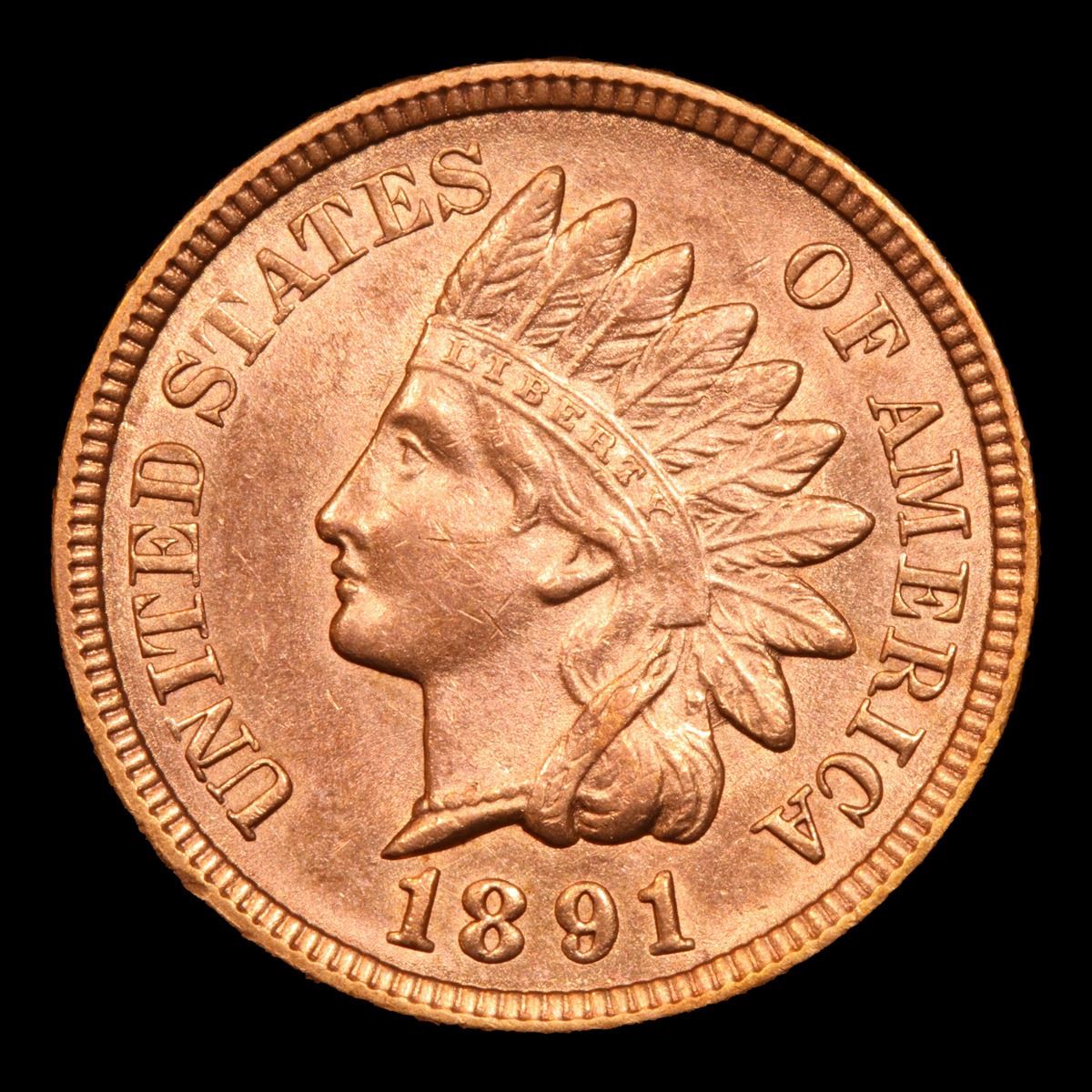 ***Auction Highlight*** 1891 . Very Near Gem Indian Cent 1c Graded Choice+ Unc RD By USCG. A Corey's Pick, Bid to Win, Don't let it get Away Coin