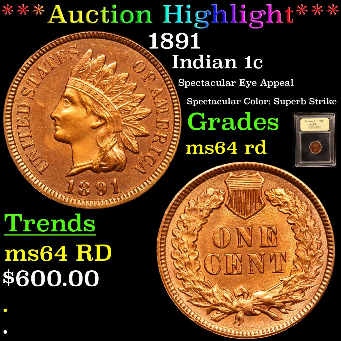 ***Auction Highlight*** 1891 Indian Cent 1c Graded Choice Unc RD By USCG. A Corey's Pick, Bid to Win Coin