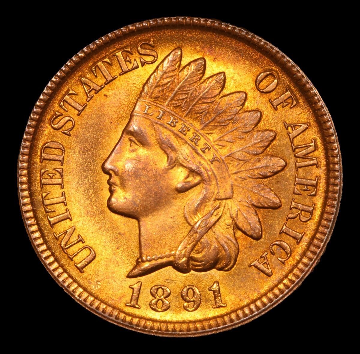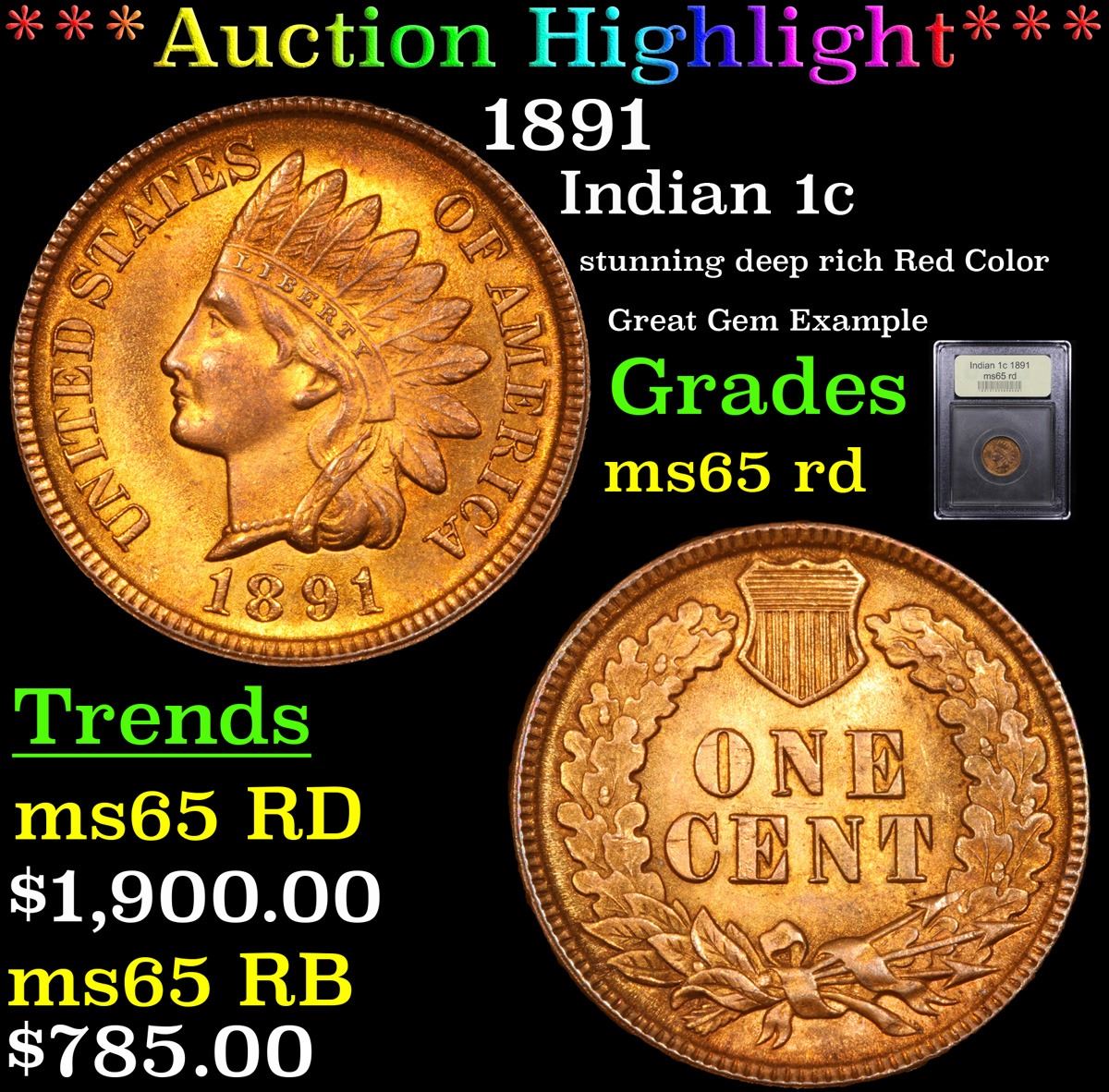 ***Auction Highlight*** 1891 stunning deep rich Red Color Great Gem Example Indian Cent 1c Graded GEM Unc RD By USCG. A Corey's Pick, Bid to Win, Don't let it get Away, you might not find its equal Coin