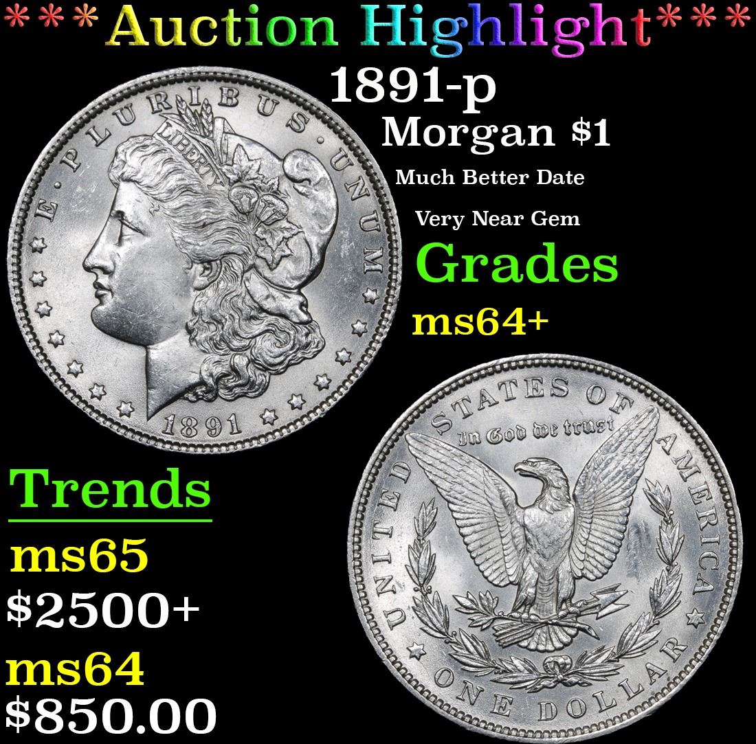 ***Auction Highlight*** 1891-p Much Better Date Very Near Gem Morgan Dollar $1 Graded Choice+ Unc By USCG. A Corey's Pick, Bid to Win Coin