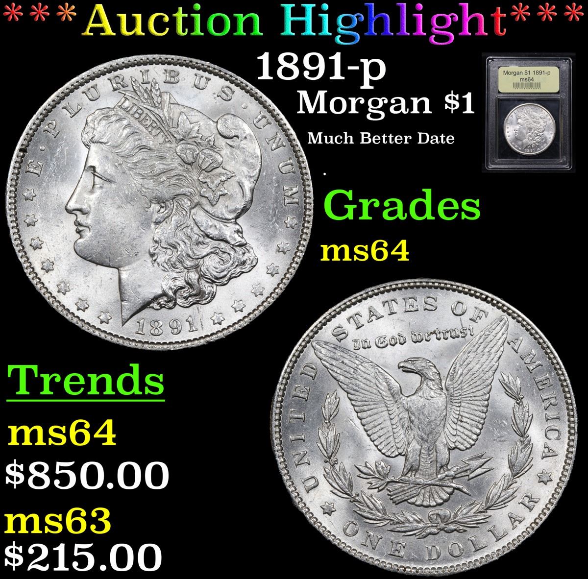 ***Auction Highlight*** 1891-p Much Better Date . Morgan Dollar $1 Graded Choice Unc By USCG. A Corey's Pick, Bid to Win Coin