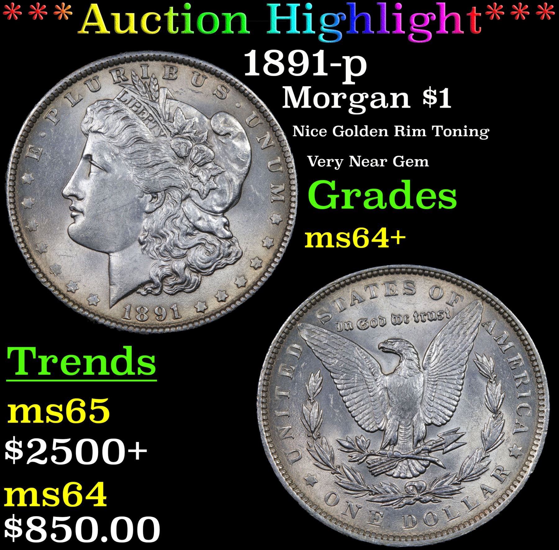 ***Auction Highlight*** 1891-p Morgan Dollar $1 Graded Choice+ Unc By USCG.         A Corey's Pick, Bid to Win, Don't let it get Away, you might not find its equal Coin