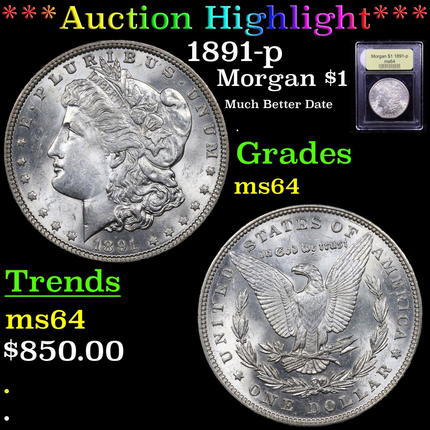 ***Auction Highlight*** 1891-p Morgan Dollar $1 Graded Choice Unc By USCG.