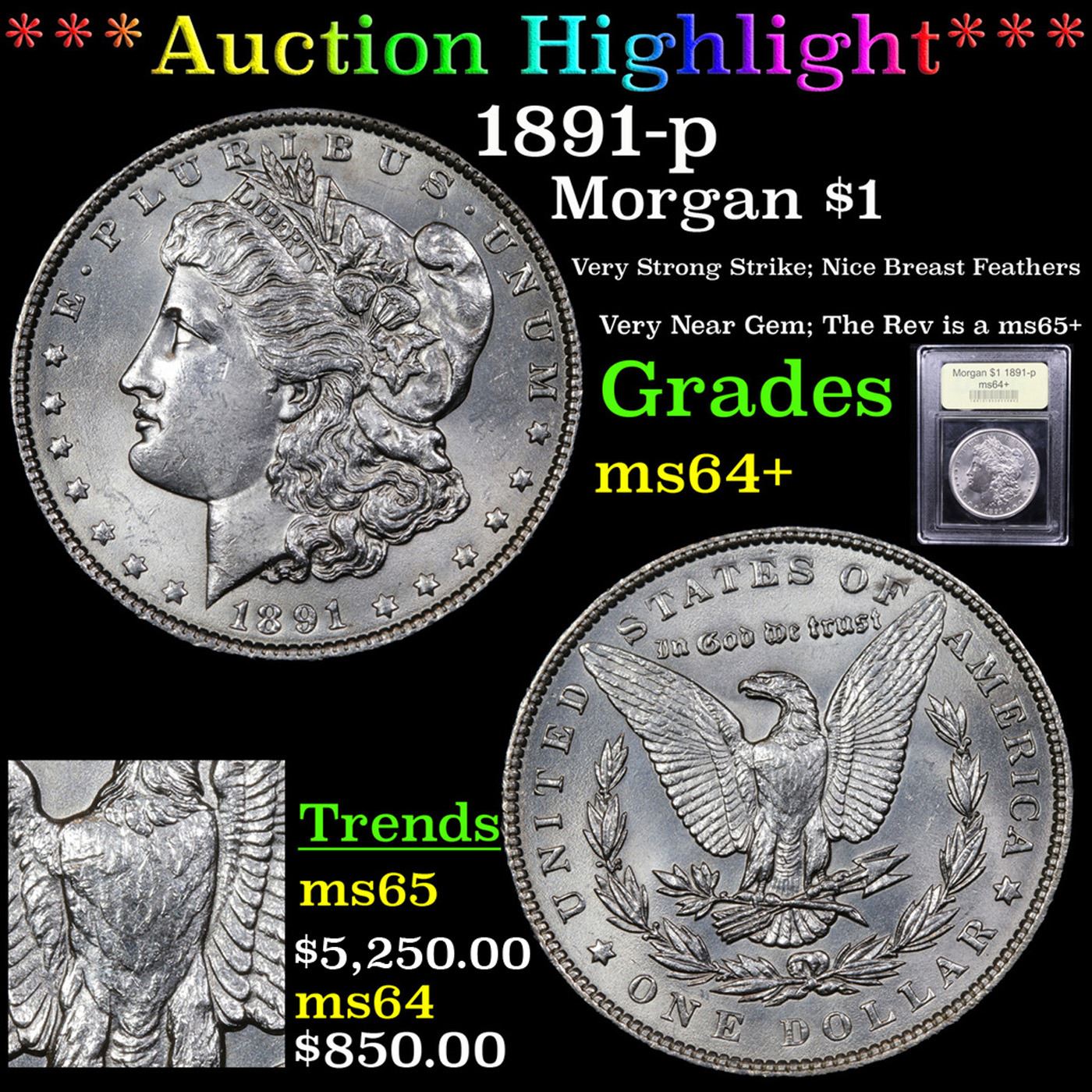 ***Auction Highlight*** 1891-p Morgan Dollar $1 Graded Choice+ Unc By USCG.