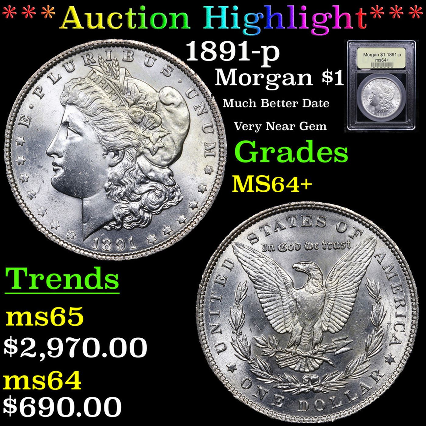 ***Auction Highlight*** 1891-p Morgan Dollar 1 Graded Choice+ Unc by USCG.