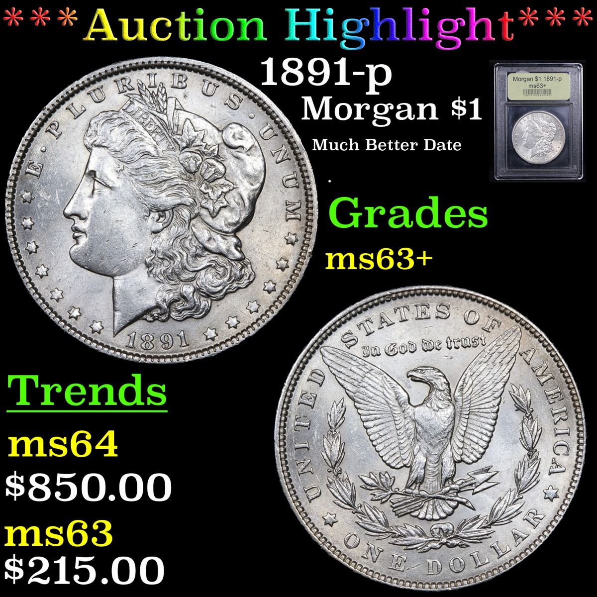 ***Auction Highlight*** 1891-p Much Better Date . Morgan Dollar $1 Graded Select+ Unc By USCG. A Corey's Pick, Bid to Win Coin