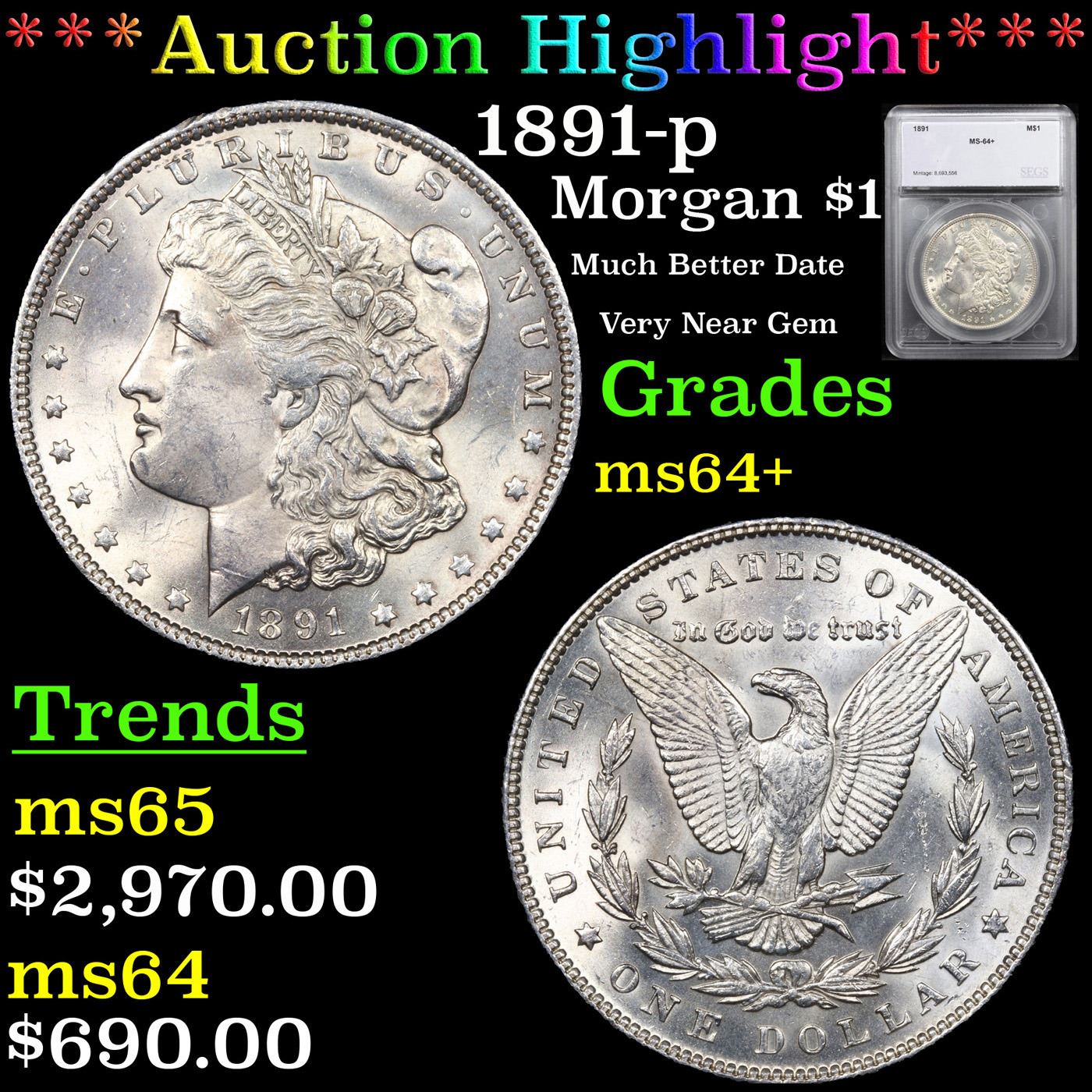 ***Auction Highlight*** 1891-p Morgan Dollar $1 Graded ms64+ By SEGS.
