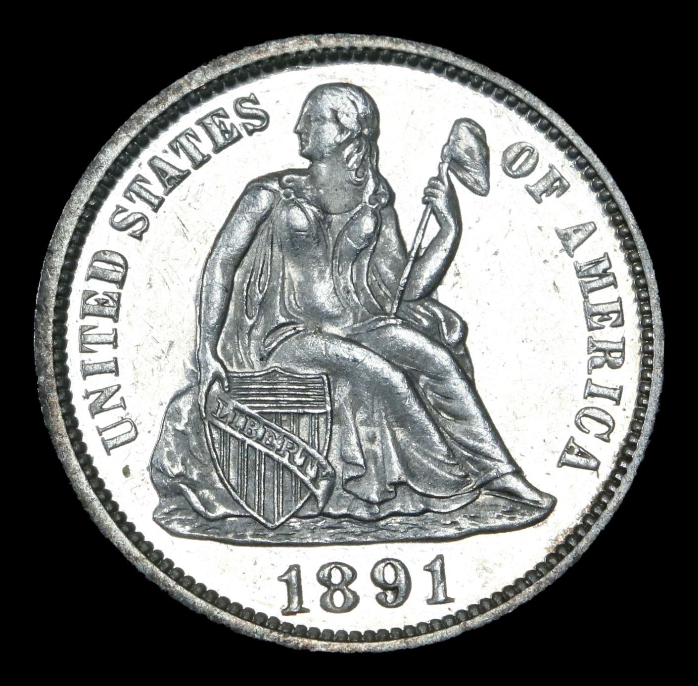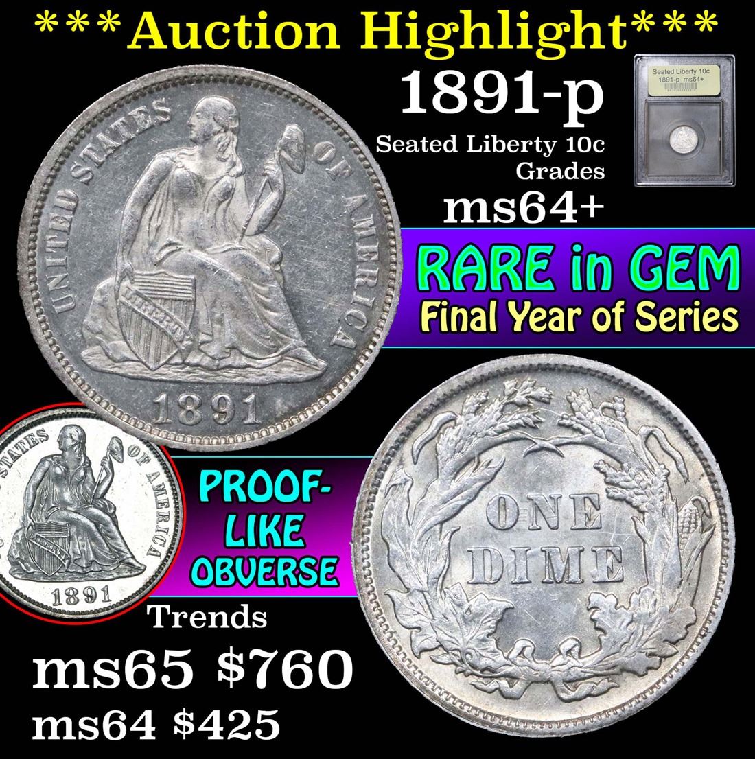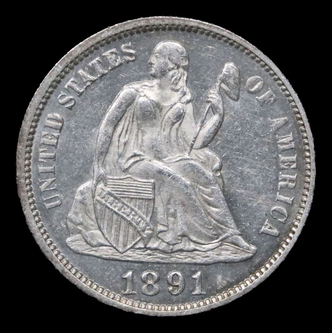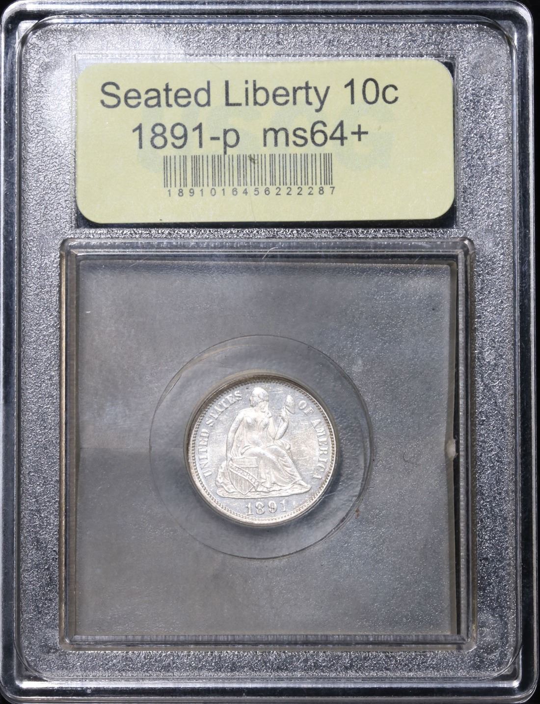 ***Auction Highlight*** 1891-p Seated Liberty Dime 10c Graded Choice+ Unc By USCG.