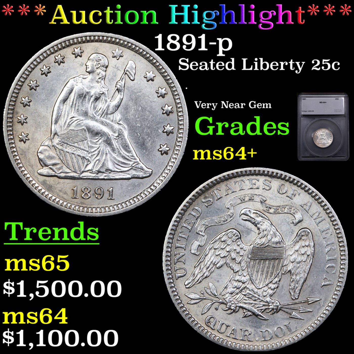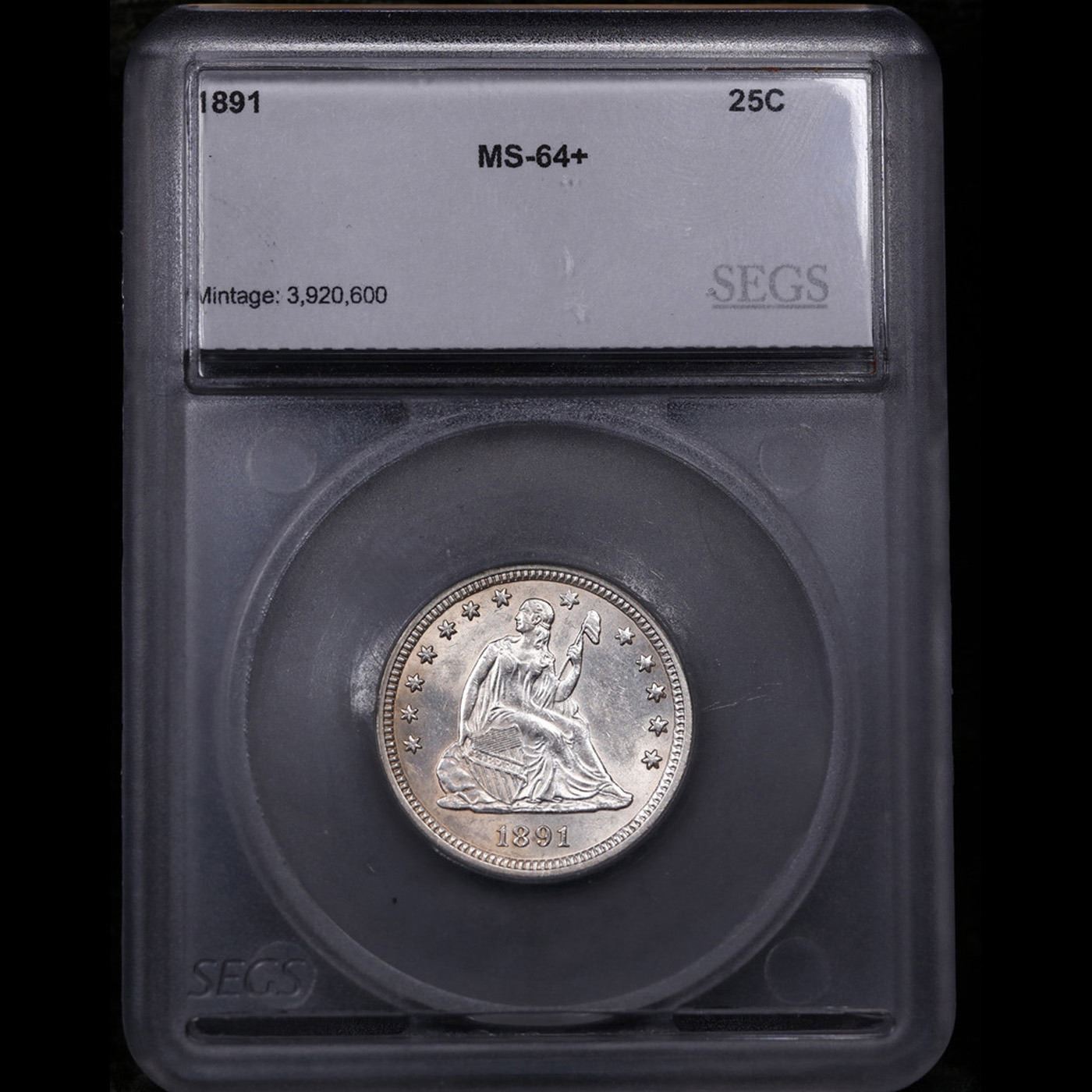 ***Auction Highlight*** 1891-p Seated Liberty Quarter 25c Graded ms64+ BY SEGS. A Corey's Pick, Bid to Win Coin