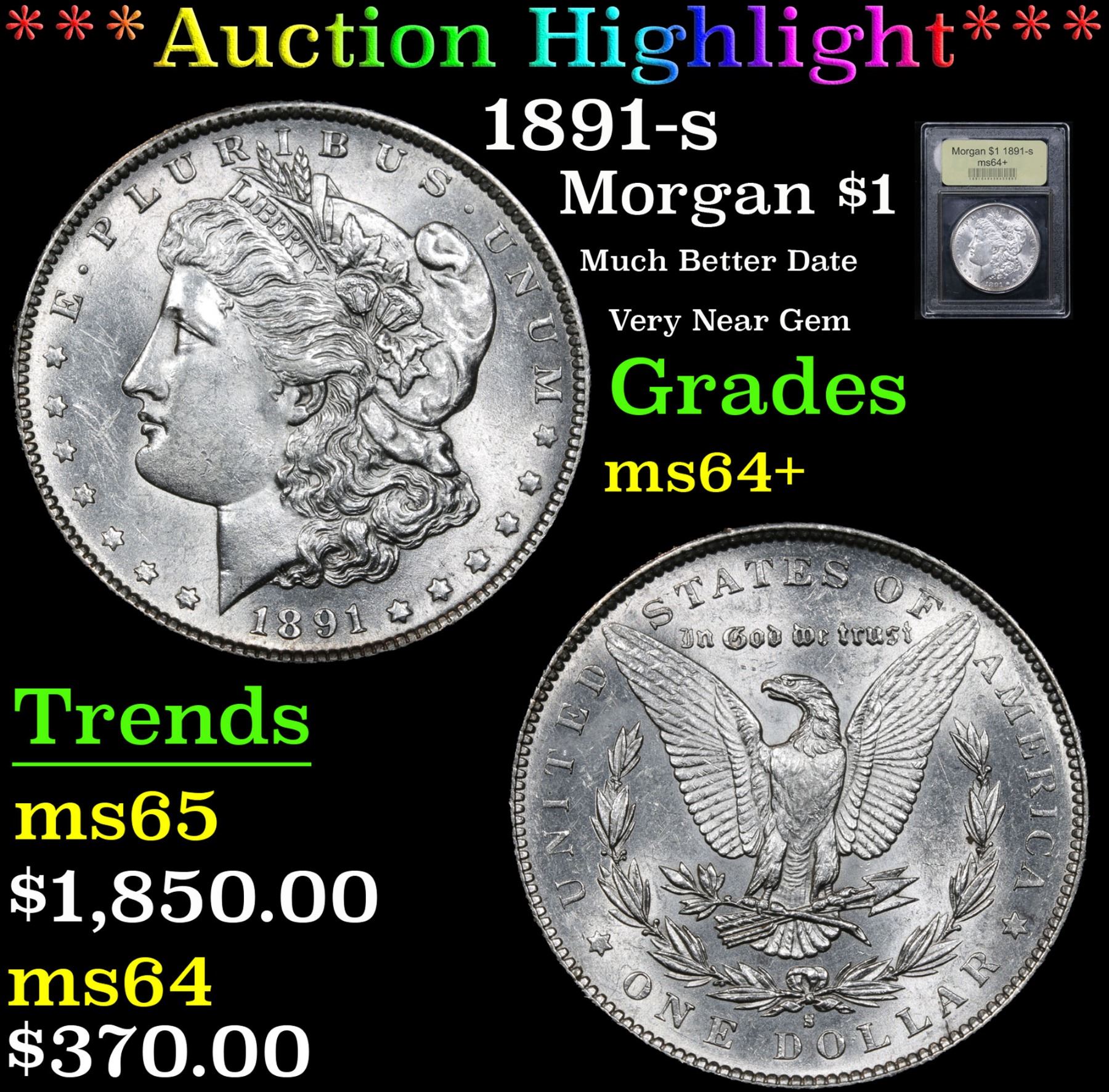 ***Auction Highlight*** 1891-s Morgan Dollar $1 Graded Choice+ Unc By USCG. Much Better Date Very Near Gem