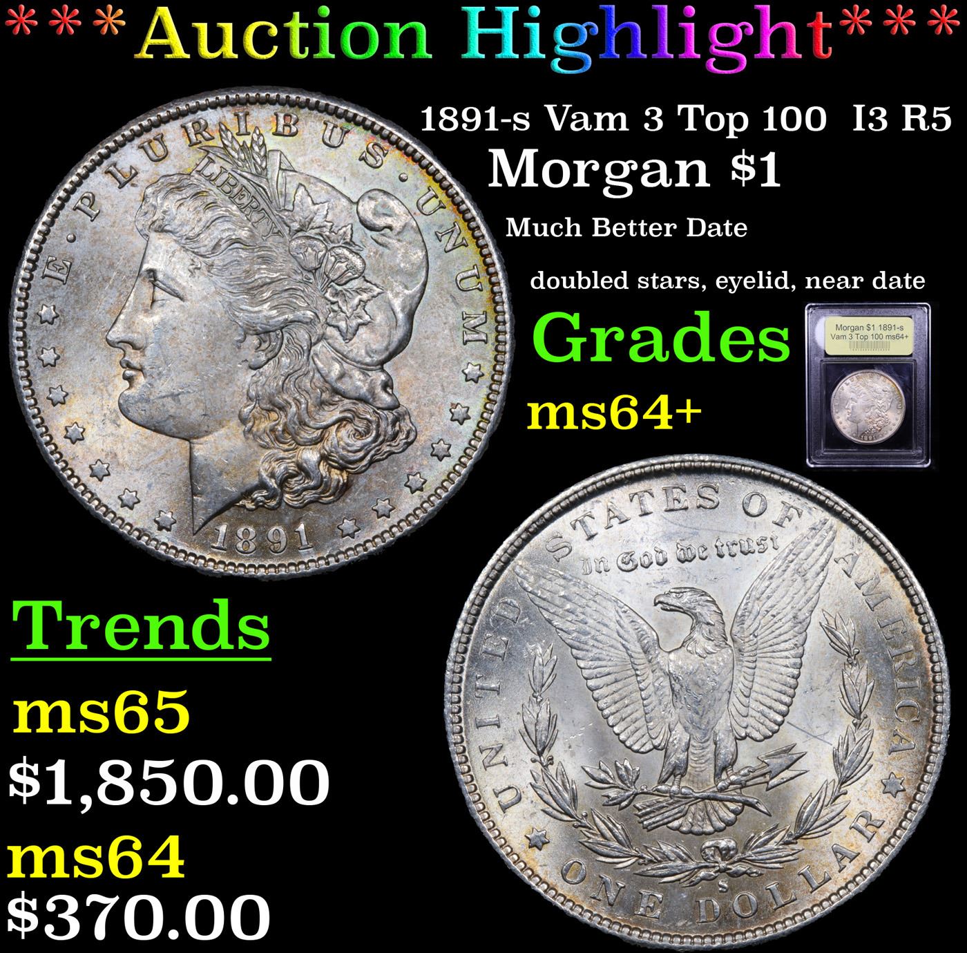 ***Auction Highlight*** 1891-s Vam 3 Top 100 I3 R5 Morgan Dollar $1 Graded Choice+ Unc BY USCG. A Corey's Pick, Bid to Win Coin