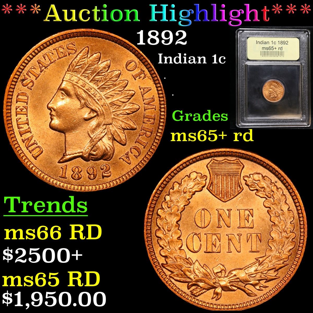 ***Auction Highlight*** 1892 . . Indian Cent 1c Graded Gem+ Unc RD By USCG. A Corey's Pick, Bid to Win, Don't let it get Away, you might not find its equal Coin