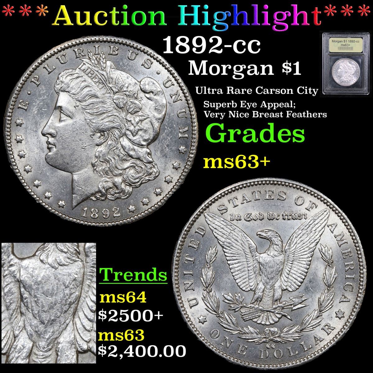 ***Auction Highlight*** 1892-cc Ultra Rare Carson City Superb Eye Appeal; Very Nice Breast Feathers Morgan Dollar $1 Graded Select+ Unc By USCG. A Corey's Pick, Bid to Win, Don't let it get Away Coin