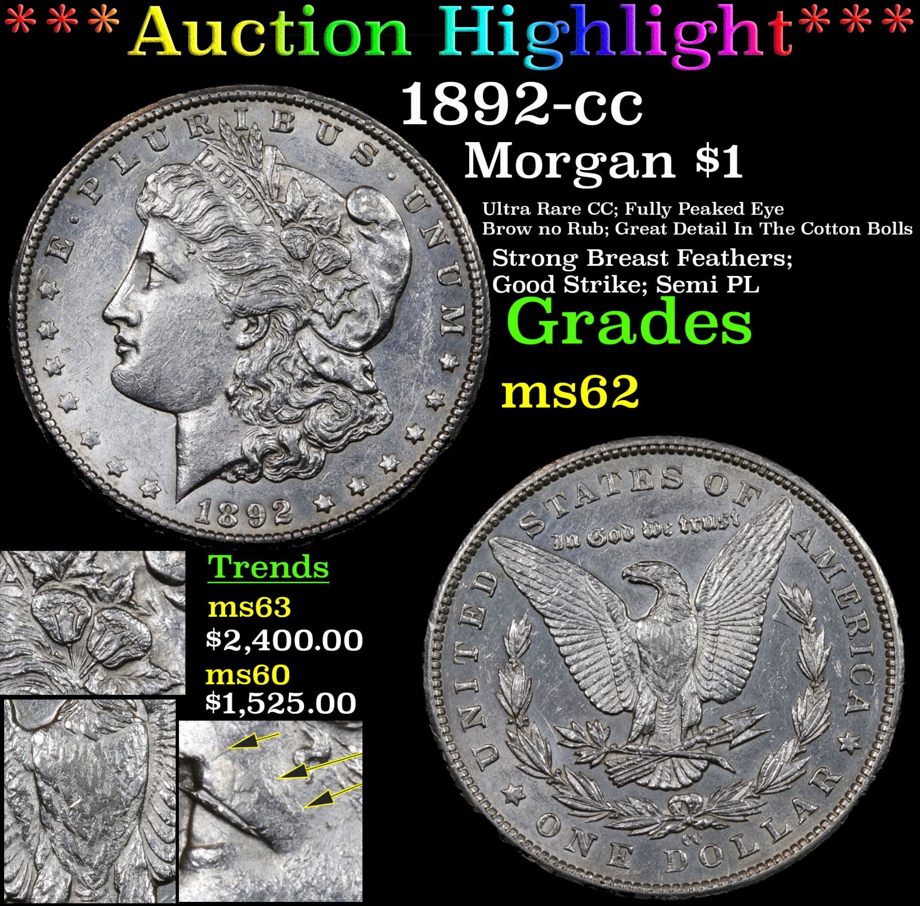 ***Auction Highlight*** 1892-cc Morgan Dollar $1 Graded Select Unc By USCG. A Corey's Pick, Bid to Win, Don't let it get Away Coin