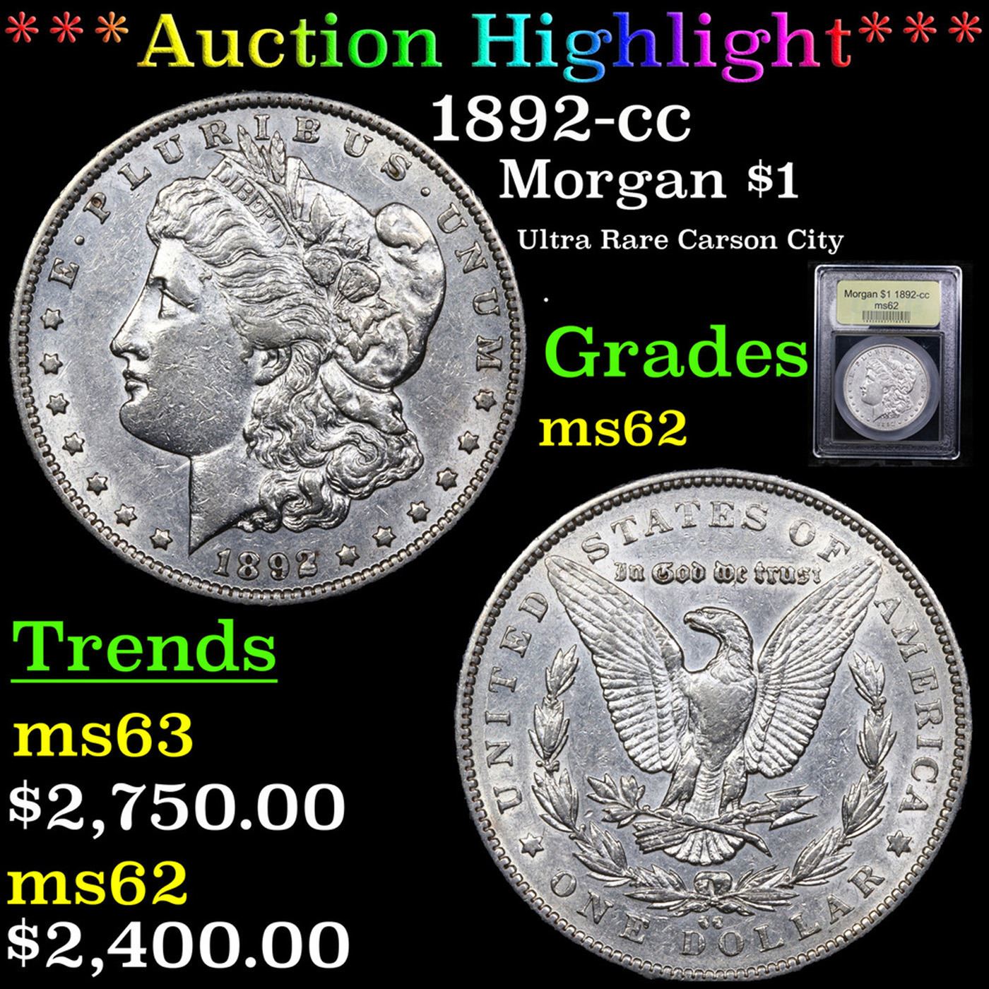 ***Auction Highlight*** 1892-cc Morgan Dollar $1 Graded Select Unc By USCG.