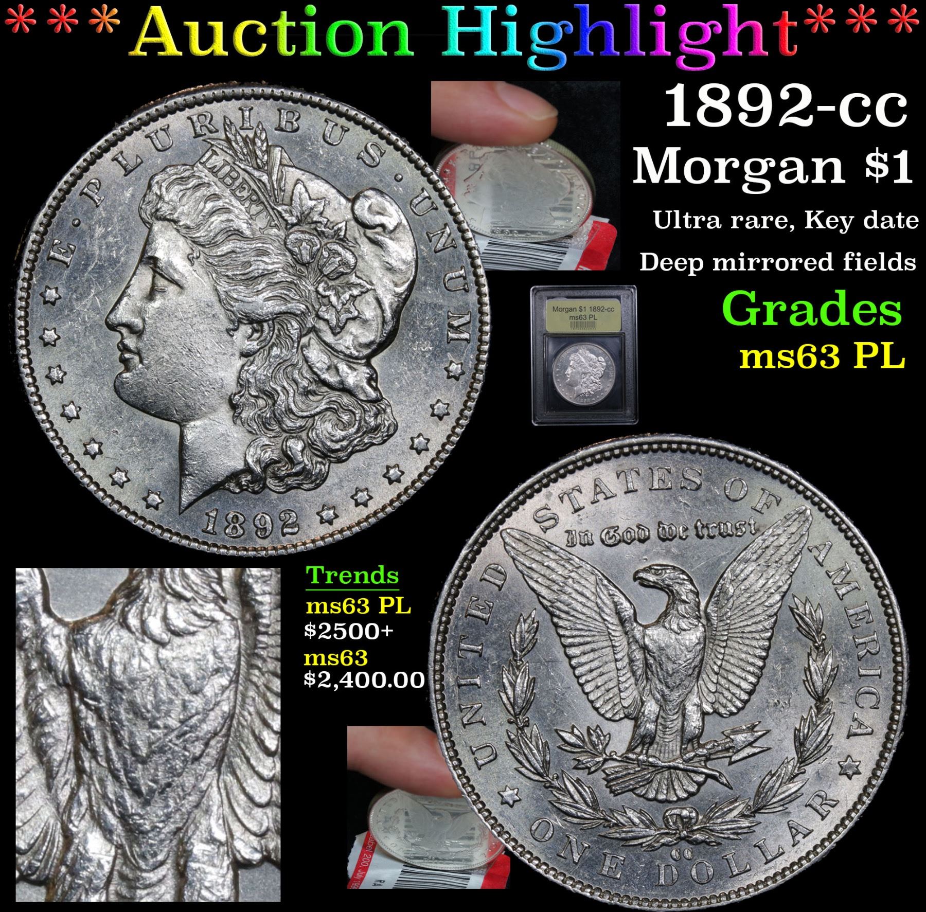 ***Auction Highlight*** 1892-cc Morgan Dollar $1 Graded Select Unc PL By USCG. Ultra rare, Virtually unknown in Proof Like. , Key date; Deep mirrored fields A Corey's Pick, Bid to Win, Don't let it get Away, you might not find its equal Coin