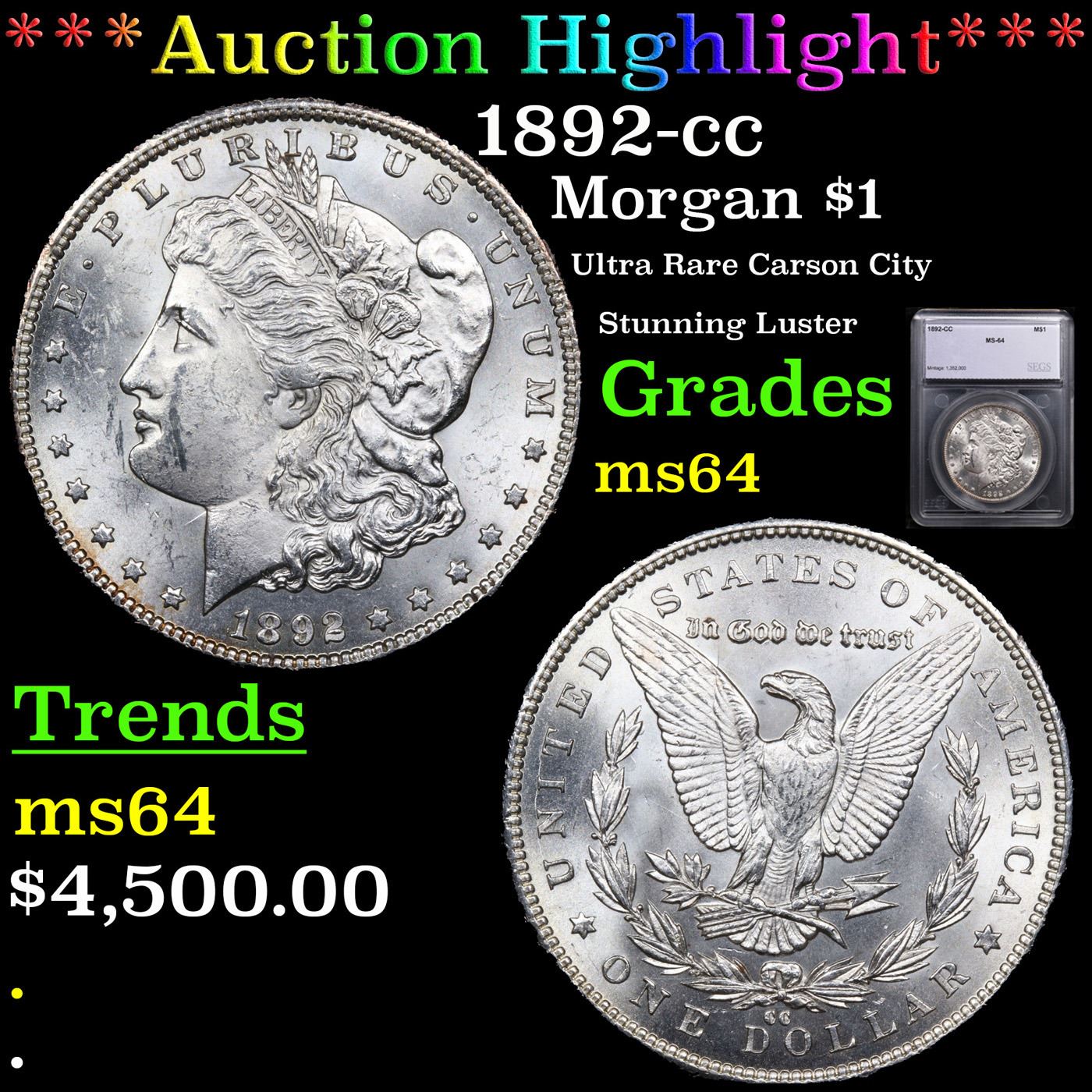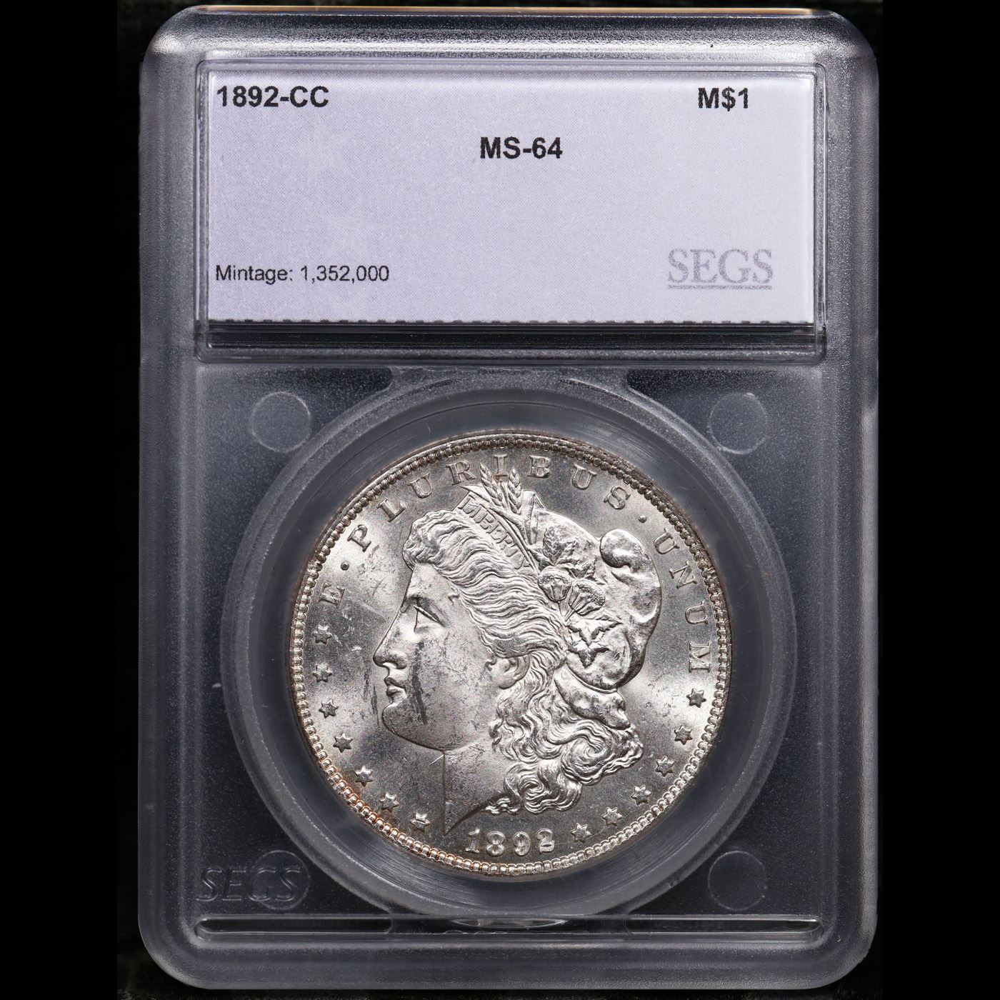 ***Auction Highlight*** 1892-cc Morgan Dollar $1 Graded ms64 BY SEGS. A Corey's Pick, Bid to Win, Don't let it get Away, you might not find its equal Coin. I give this coin my highest recommendation