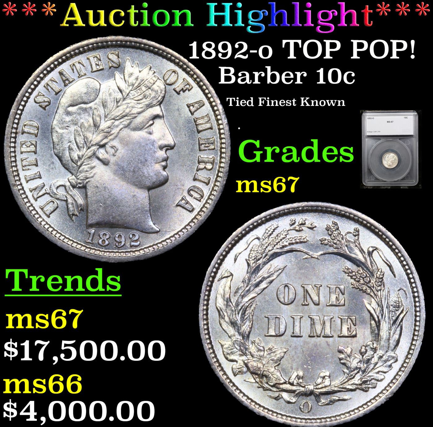 ***Auction Highlight*** 1892-o TOP POP! Barber Dime 10c Graded ms67 By SEGS. A Corey's Pick, Bid to Win, Don't let it get Away, you might not find its equal Coin. I give this coin my highest recommendation