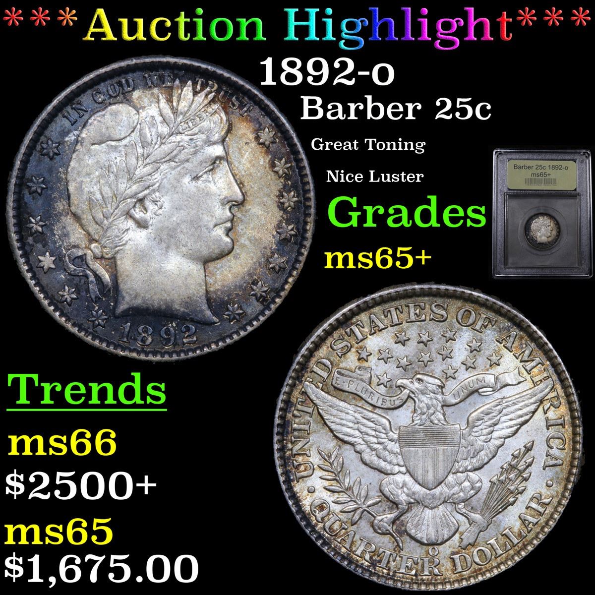 ***Auction Highlight*** 1892-o Barber Quarter 25c Graded GEM+ Unc By USCG. A Corey's Pick, Bid to Win, Don't let it get Away, you might not find its equal Coin. I give this coin my highest recommendation
