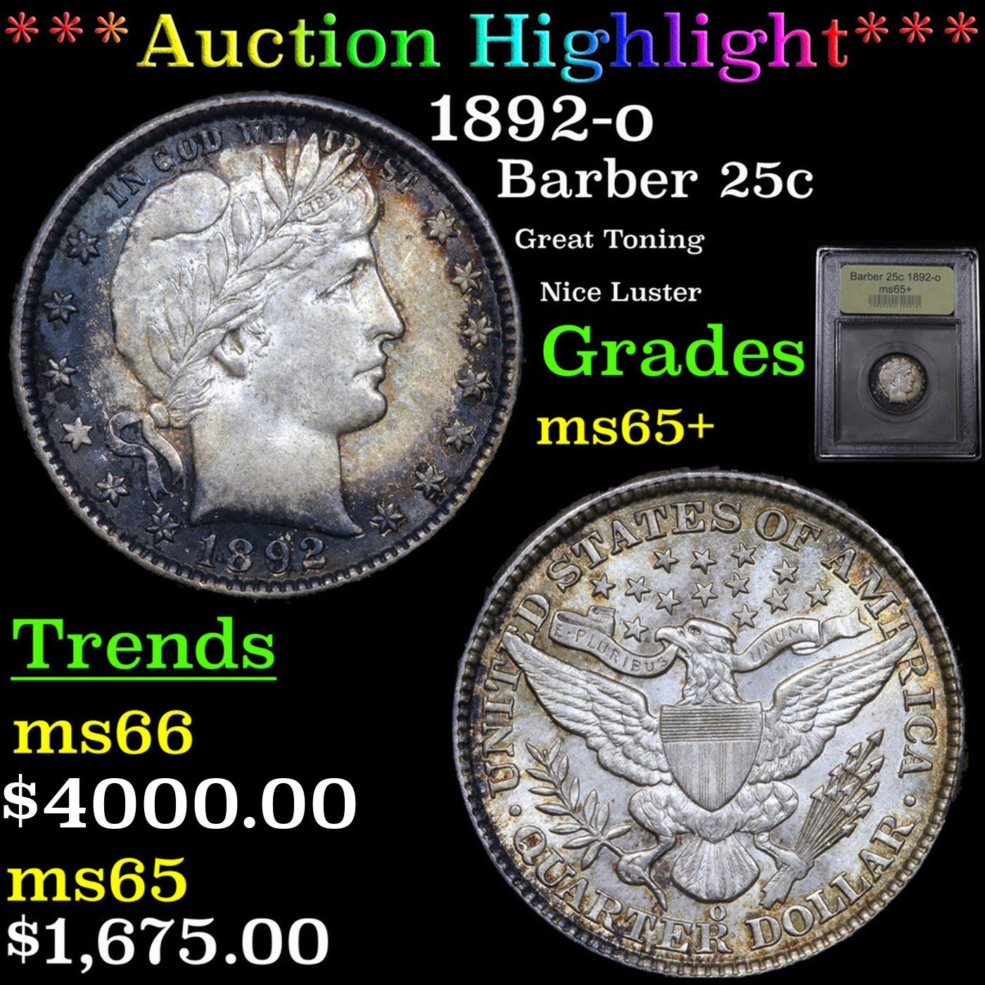 ***Auction Highlight*** 1892-o Barber Quarter 25c Graded GEM+ Unc By USCG. A Corey's Pick, Bid to Win, Don't let it get Away, you might not find its equal Coin. I give this coin my highest recommendation