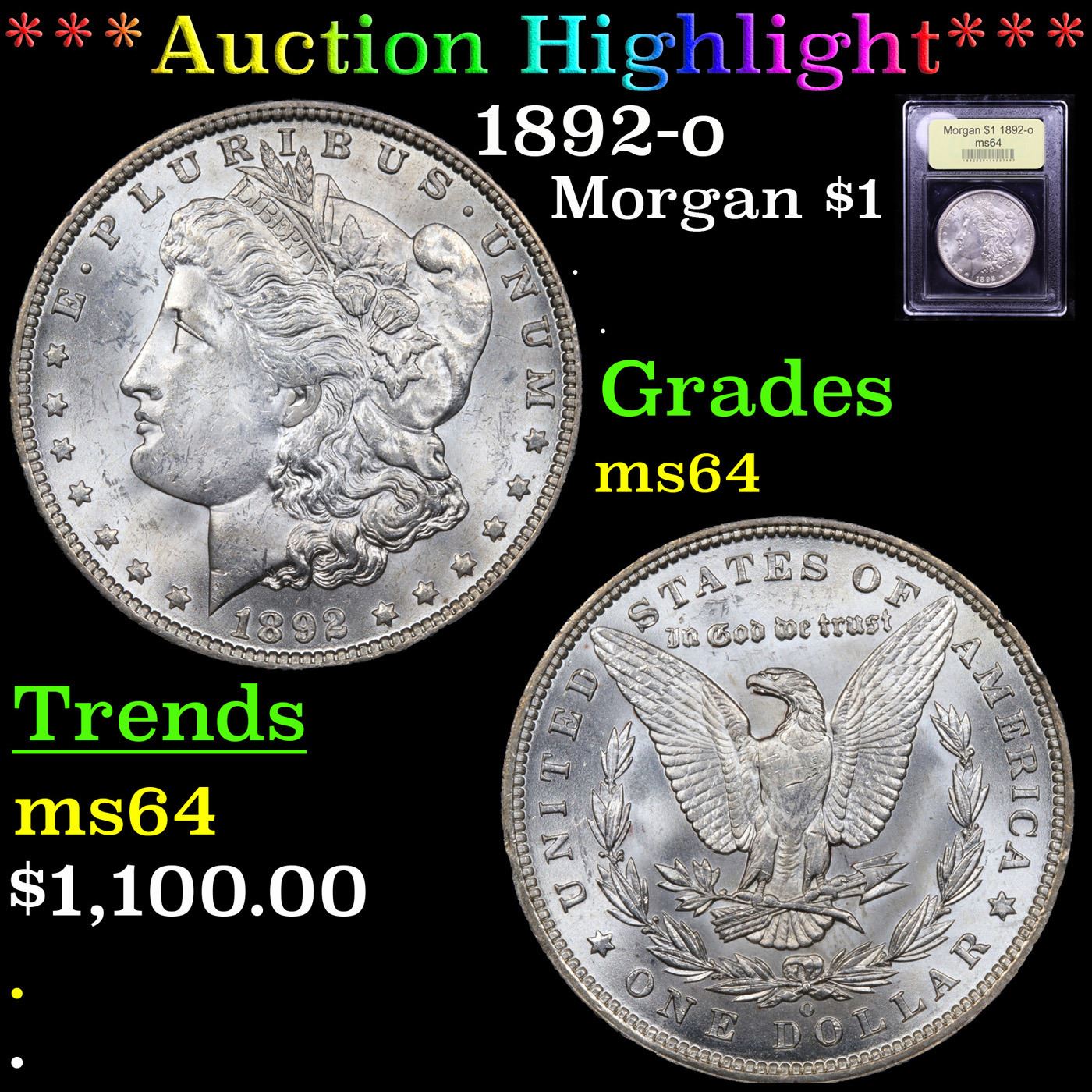 ***Auction Highlight*** 1892-o Morgan Dollar $1 Graded Choice Unc By USCG. A Corey's Pick, Bid to Win Coin