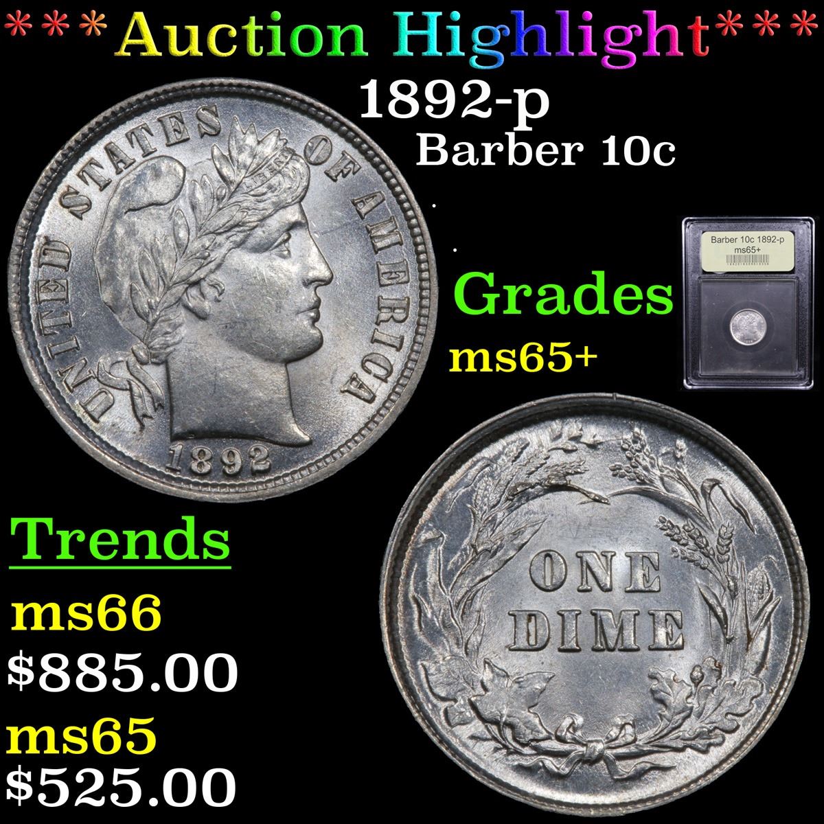 ***Auction Highlight*** 1892-p Barber Dime 10c Graded GEM+ Unc BY USCG. First year of issue. A Corey's Pick, Bid to Win Coin
