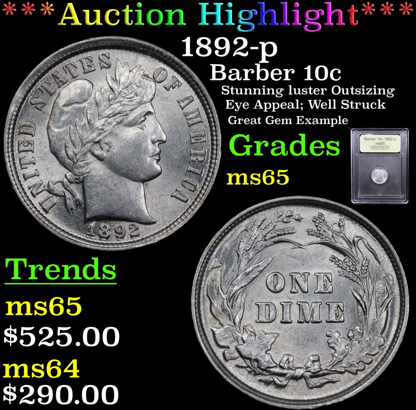 ***Auction Highlight*** 1892-p Barber Dime 10c Graded GEM Unc By USCG. First year of issue. A Corey's Pick, Bid to Win Coin