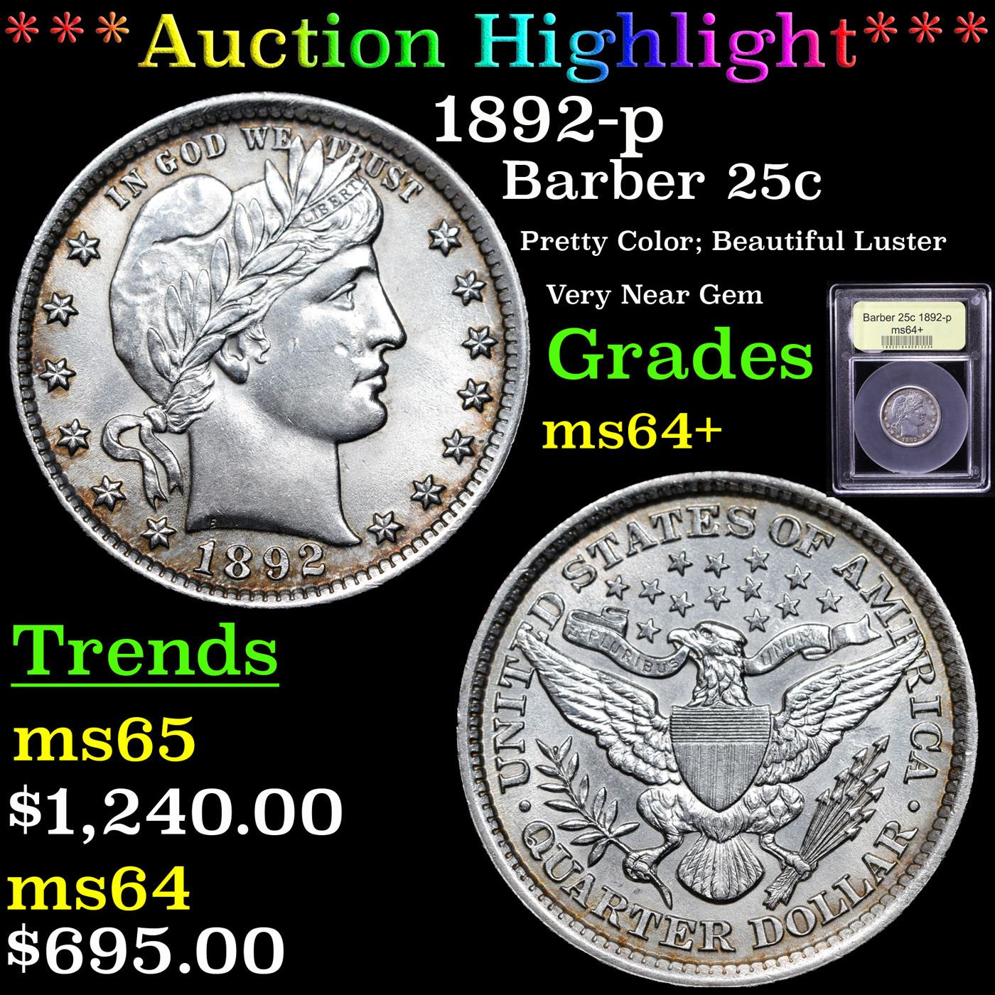 *Highlight* 1892-p Barber 25c Graded Choice+ Unc