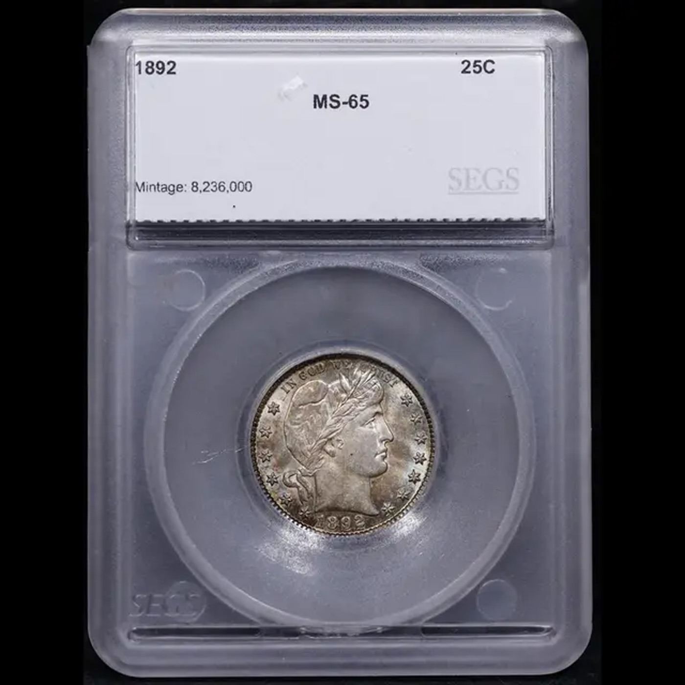 ***Auction Highlight*** 1892-p Barber Quarter 25c Graded ms65 BY SEGS. First year of issue. A Key Date's Pick, Bid to Win, Don't let it get Away Coin